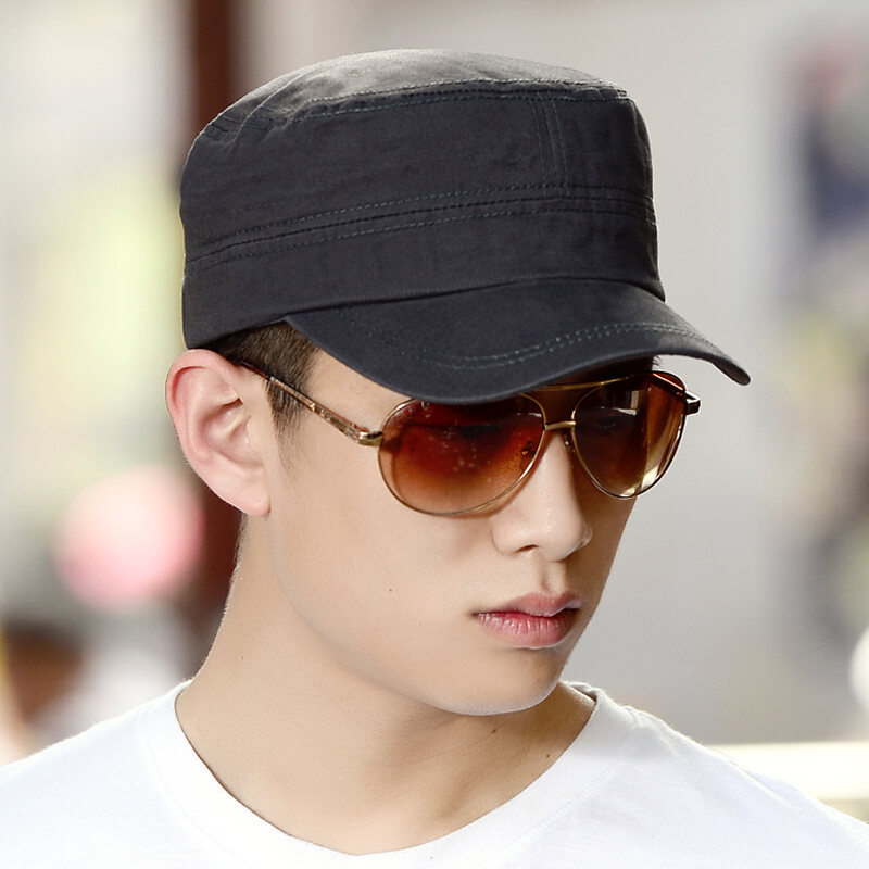 Hat Men's Autumn and Winter Warm Cotton Flat-Top Cap Outdoor Korean Fashion Baseball Cap Brim Hat Sun Hat