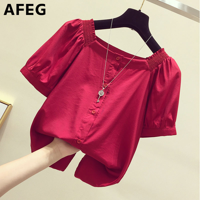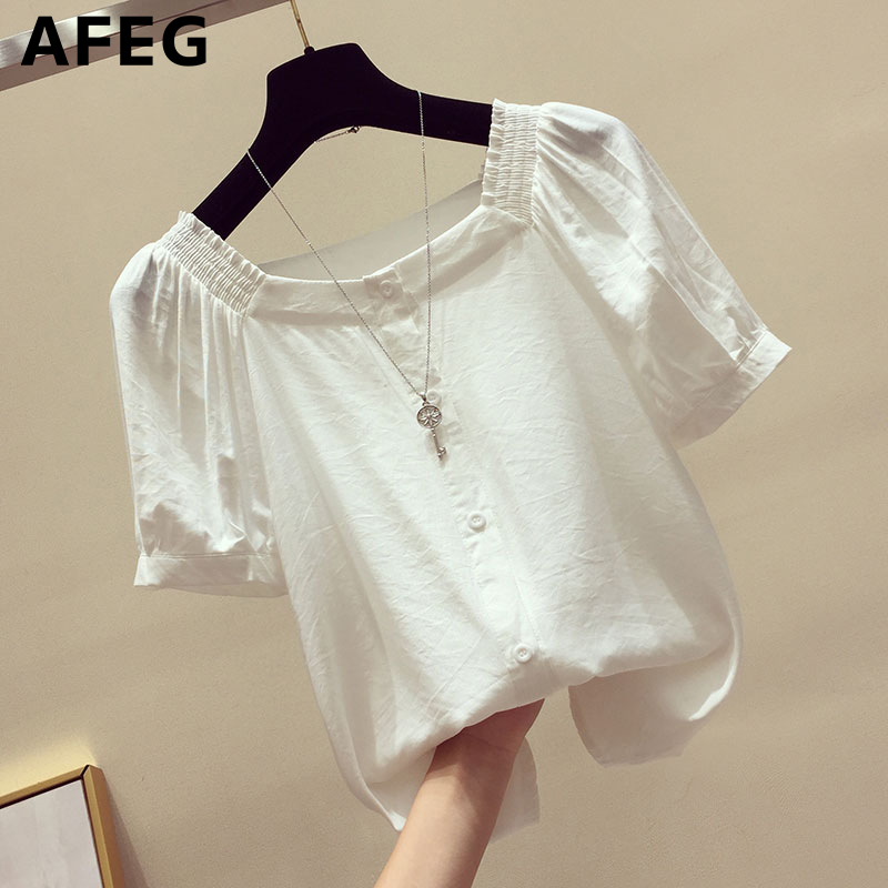 AFEG new Korean version square neck fashion loose all-match temperament puff sleeve blouse for women