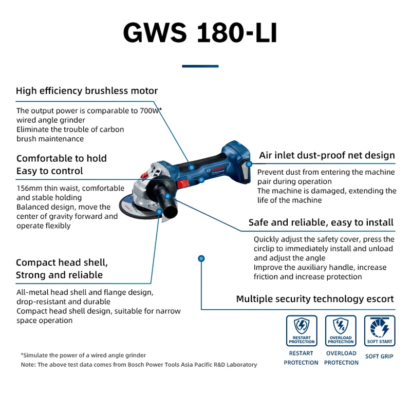 BOSCH Angle Grinder GWS 180-Li 18V Cordless Brushless Angle Grinder Cutting Polishing Machine