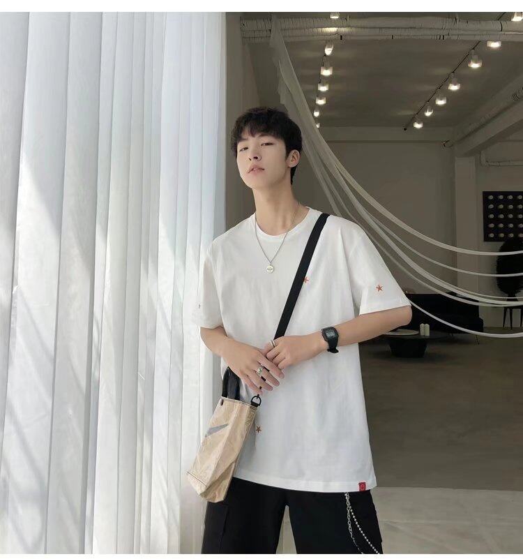 2022 t shirt Men Cotton Korean Style Oversize Short Sleeve Plain Fashion Tops Loose Casual t-shirt