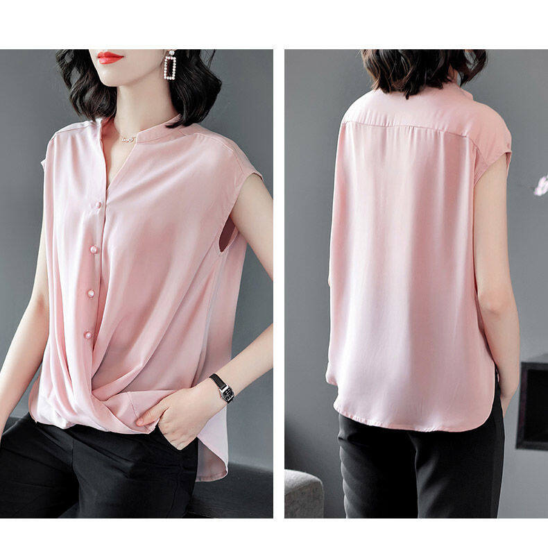 Blouse for Women V-Neck Chiffon Solid Loose Short Sleeve Women's Pullovers Shirts Summer Office Lady Plus Size Korean Style Top