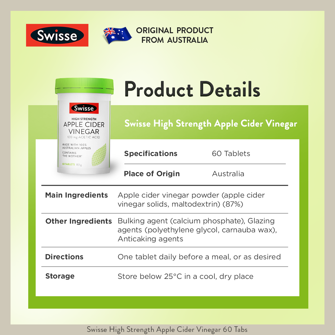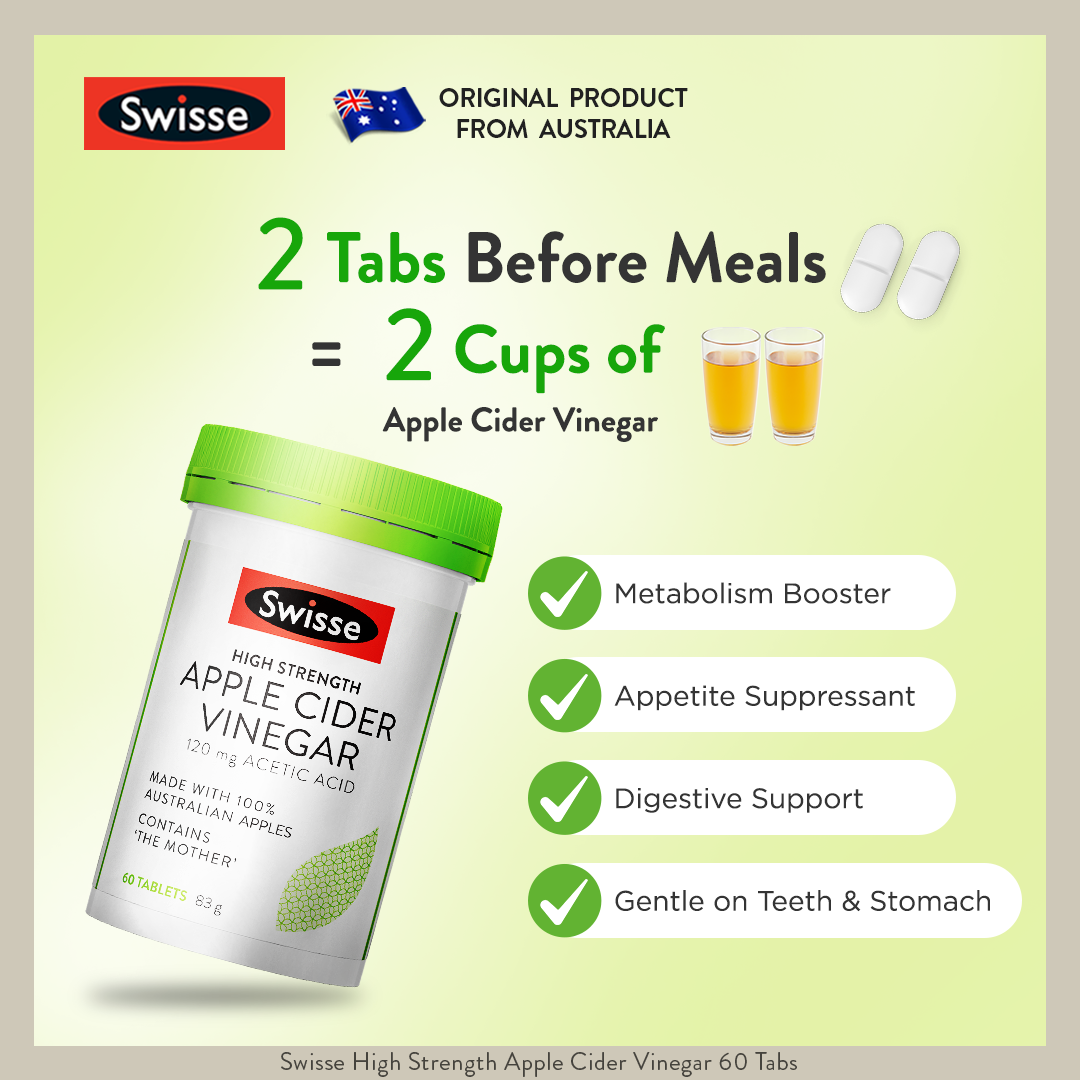 Swisse High Strength Apple Cider Vinegar 60 Tablets (EXP:03 2024)
