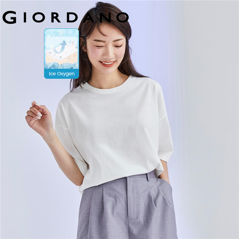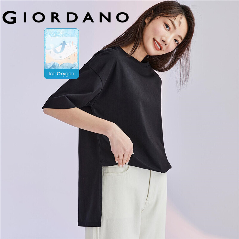 GIORDANO Women T-Shirts High-Tech Ice Oxygen Cooling Effect Summer Tee Double Split Solid Color Casual Simple Basic Tee 05322402