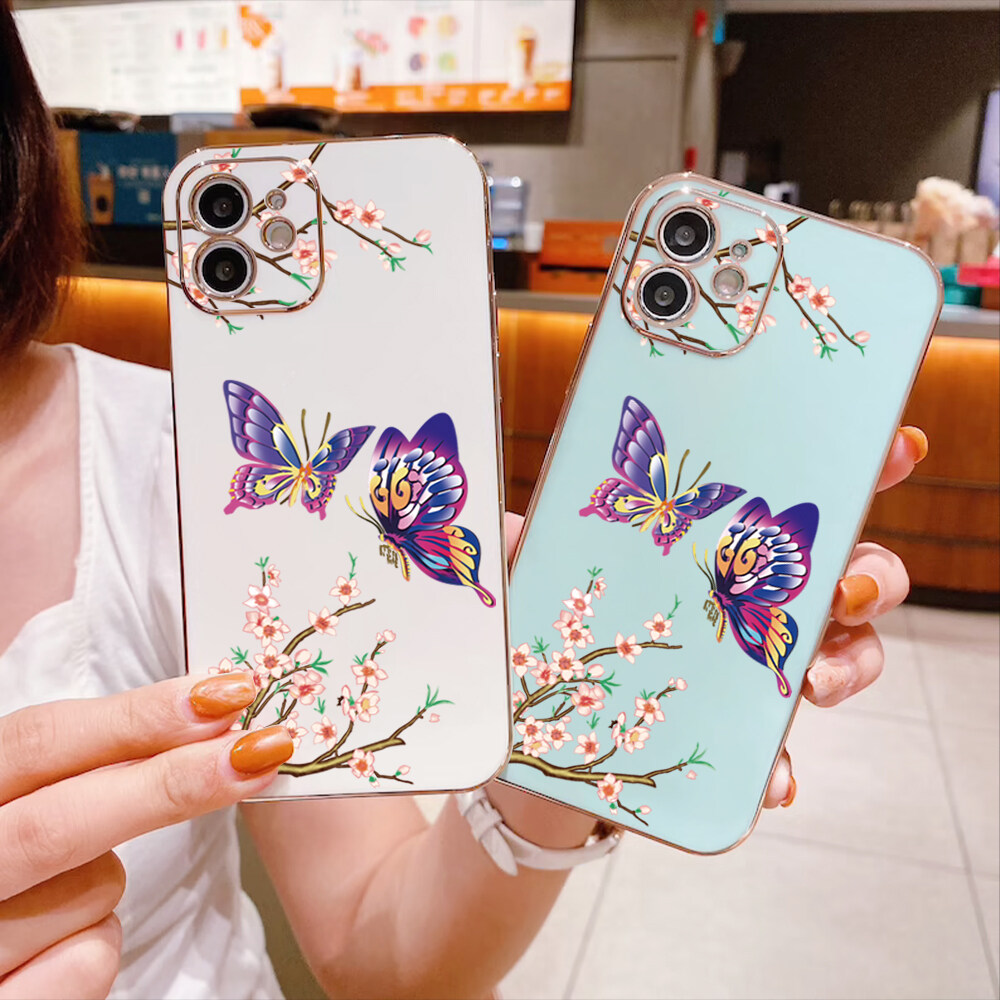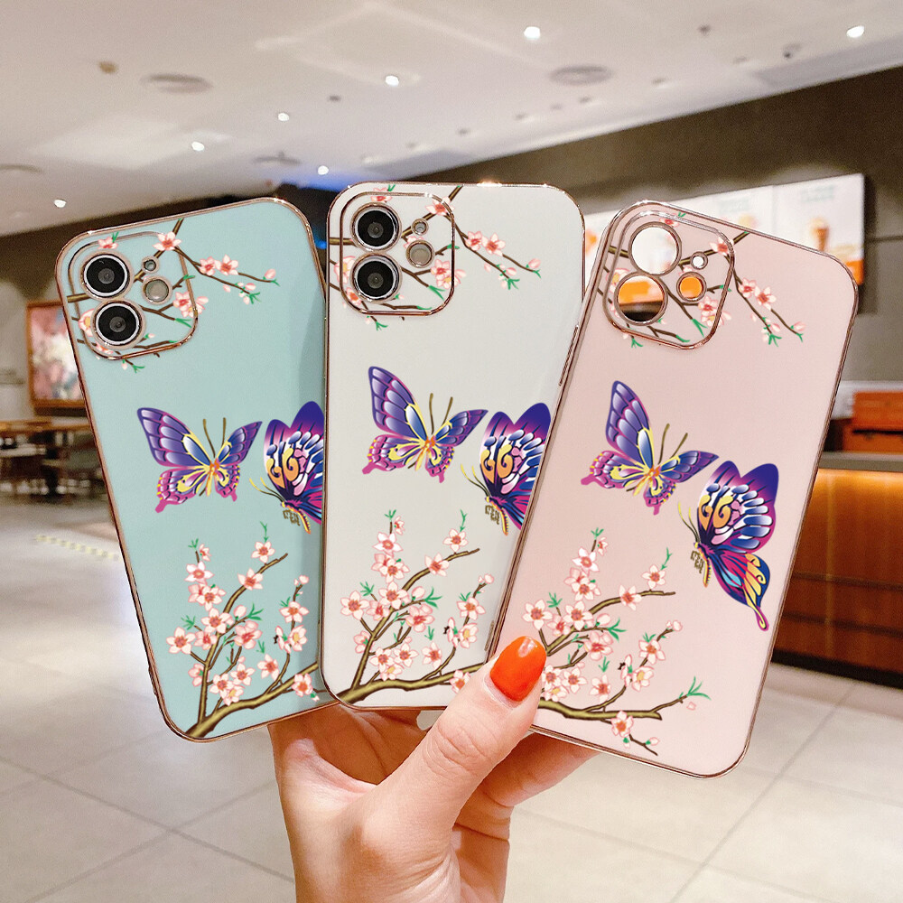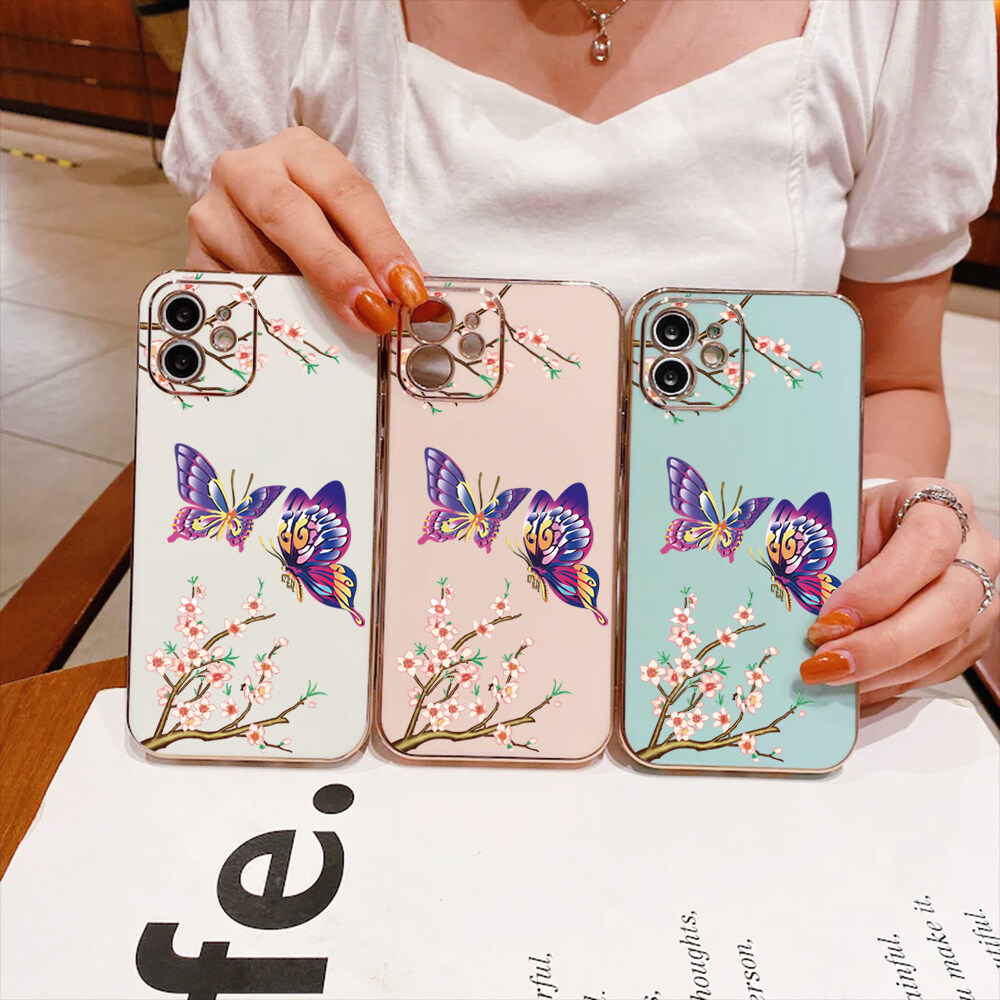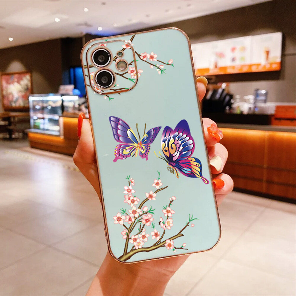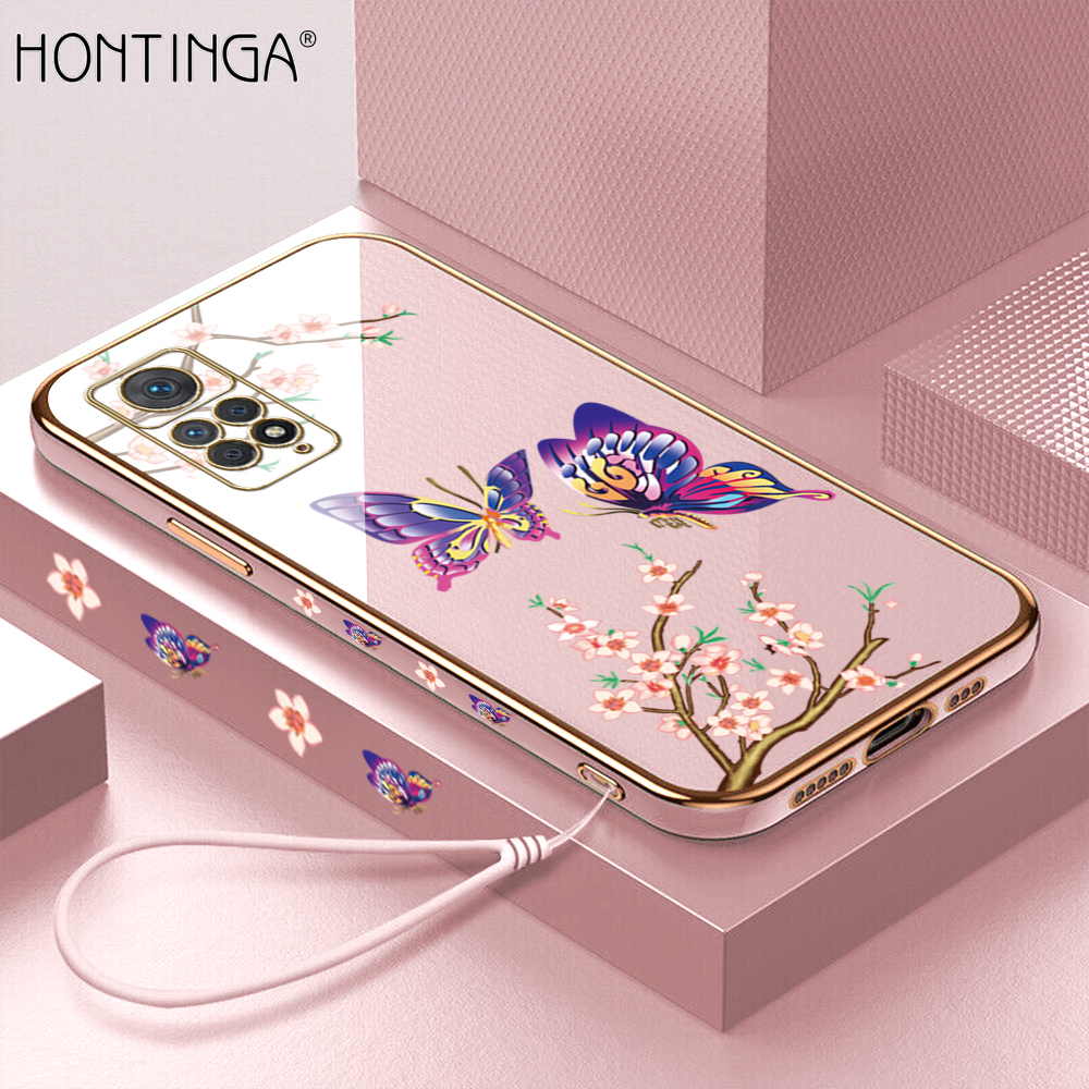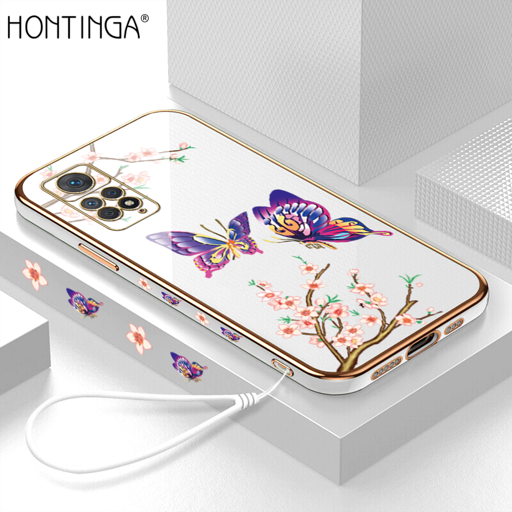 Hontinga Casing Case For Xiaomi Redmi Note 11 Pro 4G 5G Case Fashion Colorful Butterfly Luxury Chrome Plated Soft TPU Square Phone Case Full Cover Camera Protection Anti Gores Rubber Cases For Girls