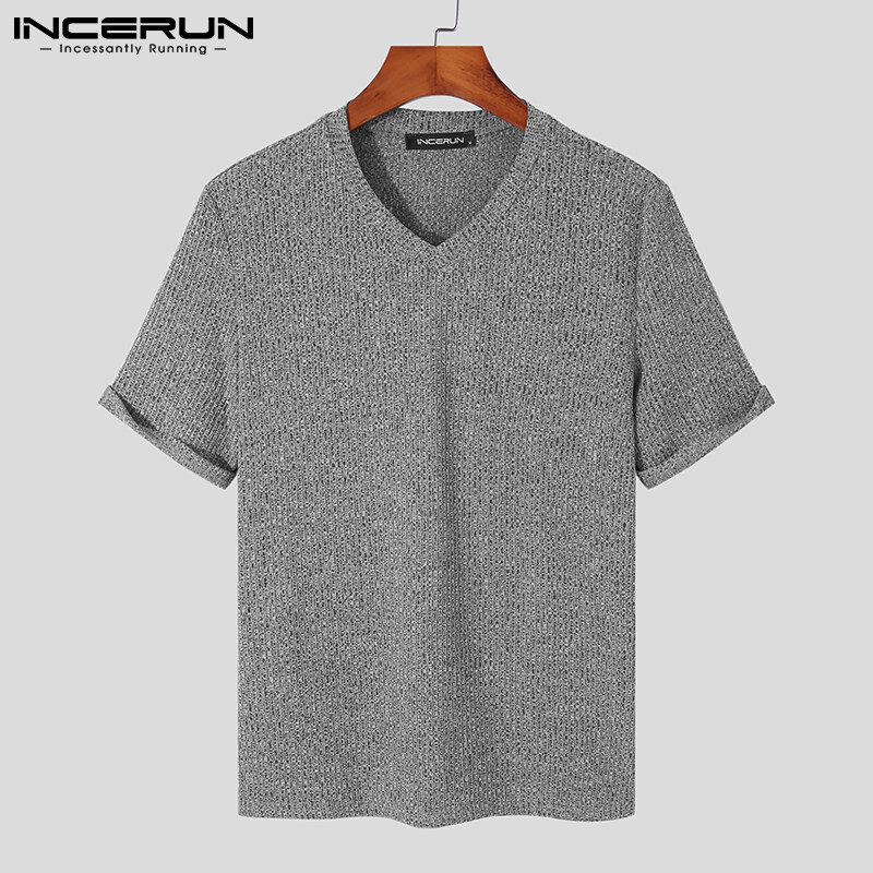 INCERUN Mens Muscle Fit Blouse Short Sleeve V-Neck Tops Gym Sport T Shirt Shirts (Casual Wear) #2