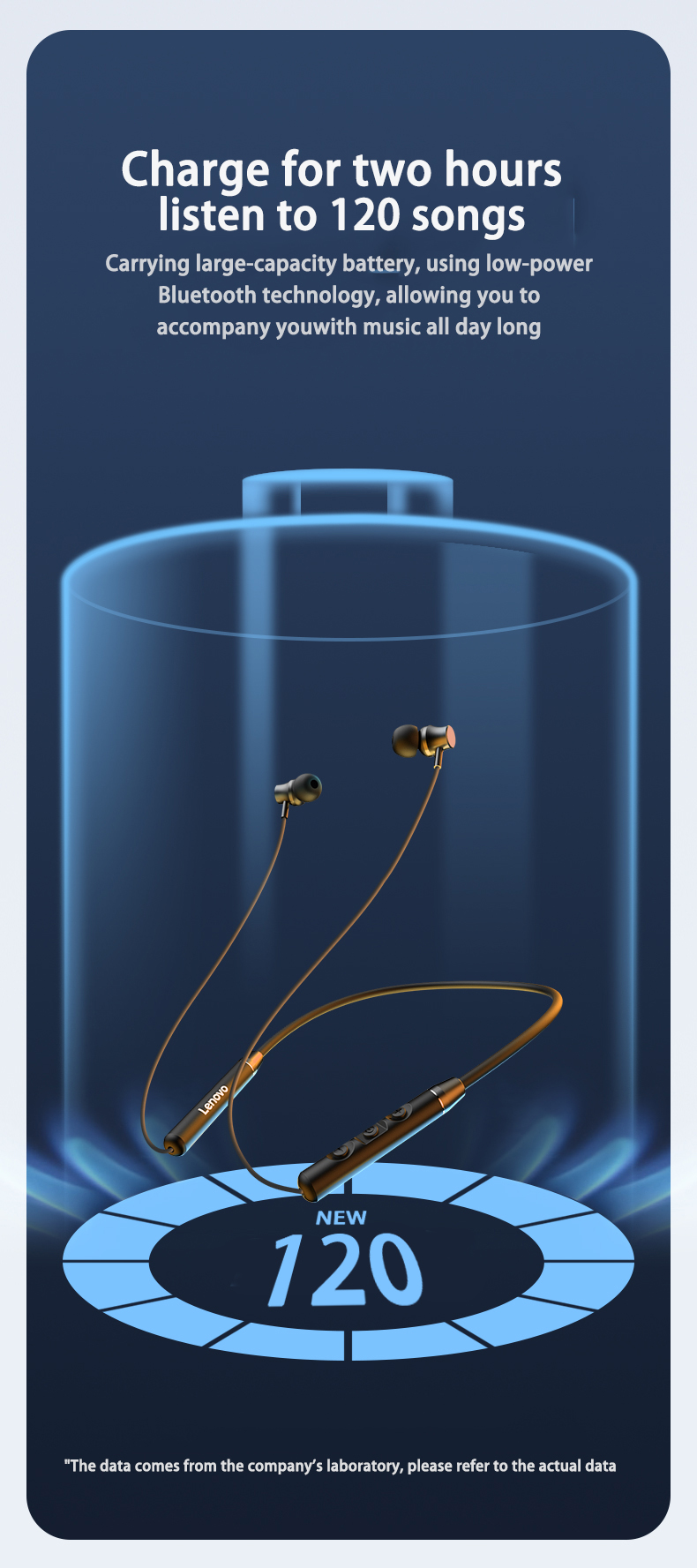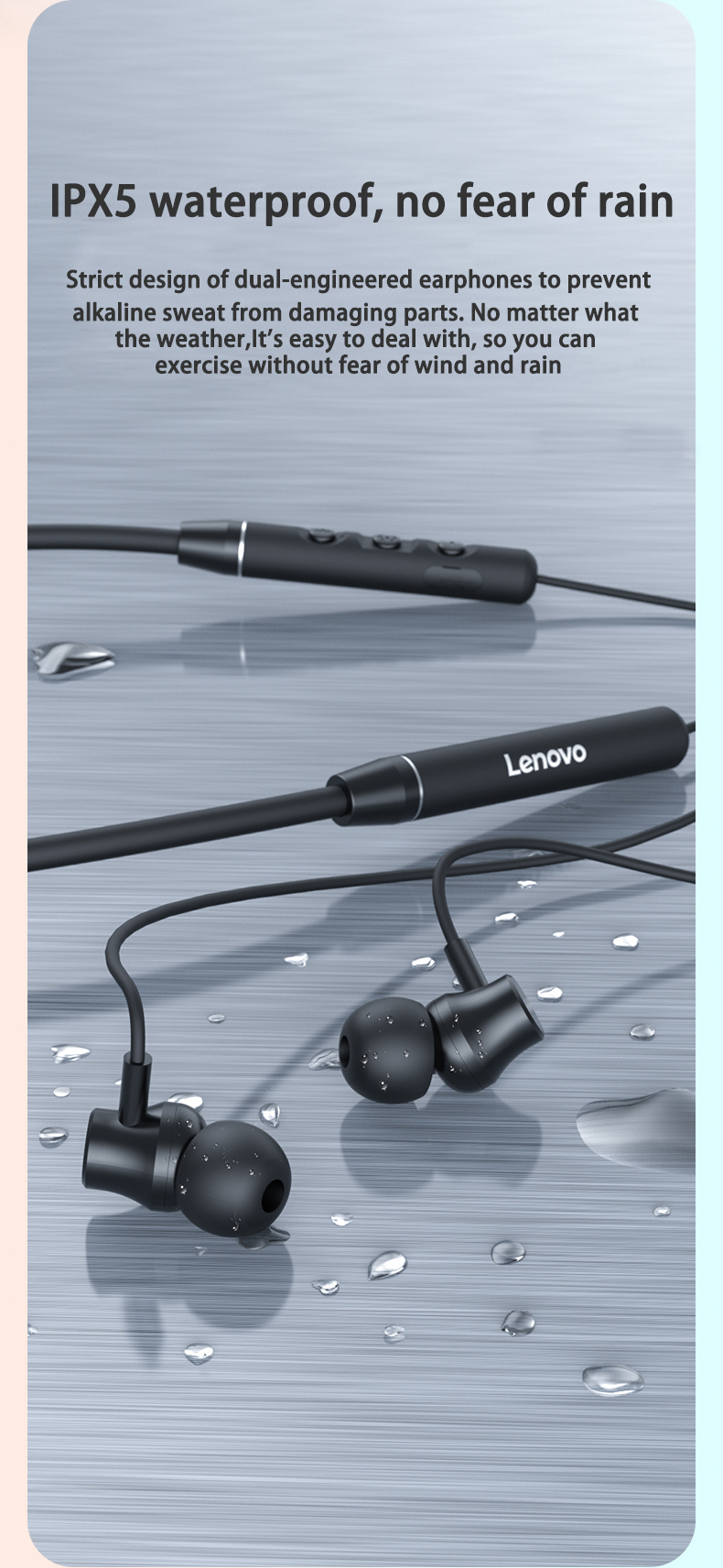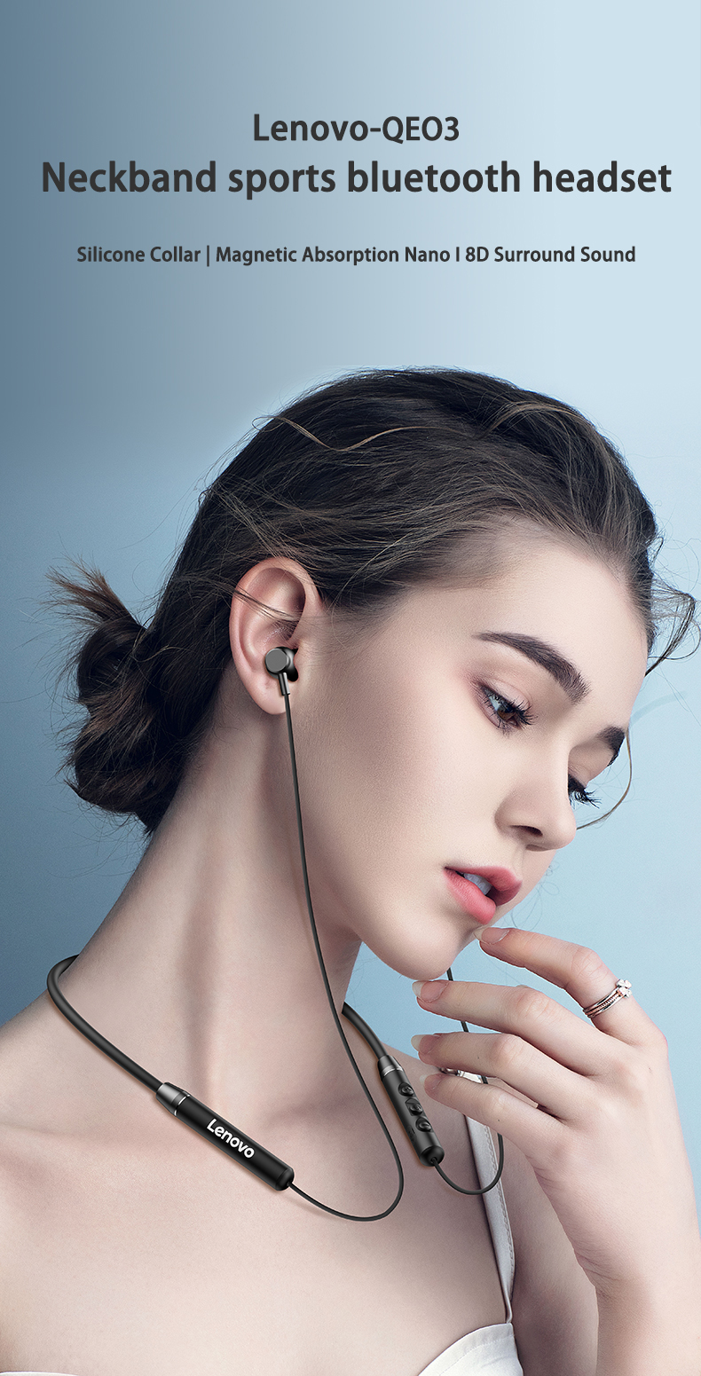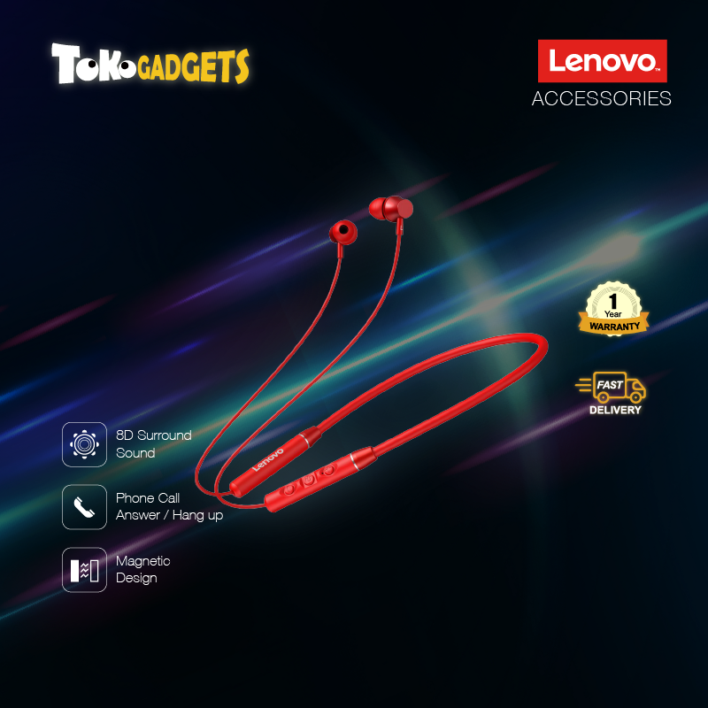 Lenovo QE03 Neckband Wireless Bluetooth Earphone In-Ear Headset with Mic Sweatproof (8D Surround Sound) - 1 Year Warranty