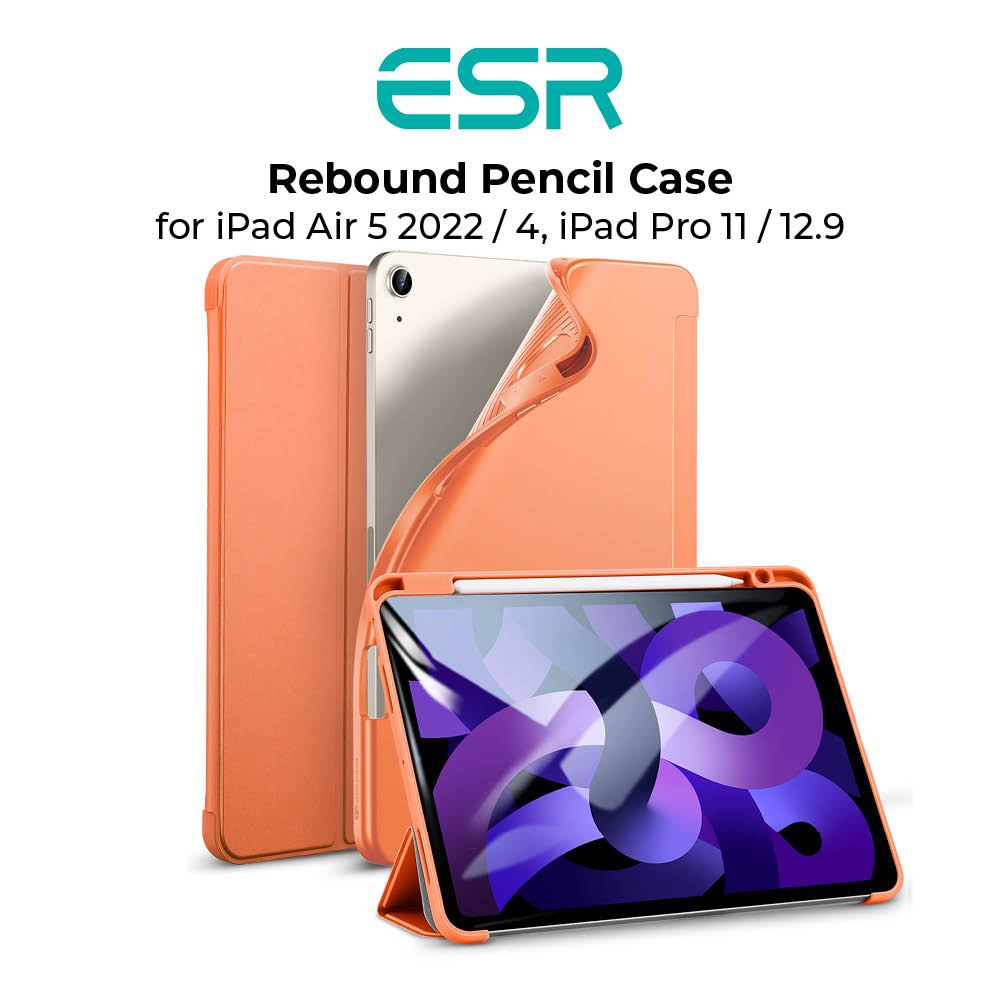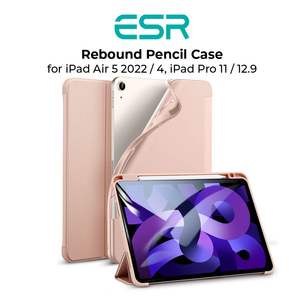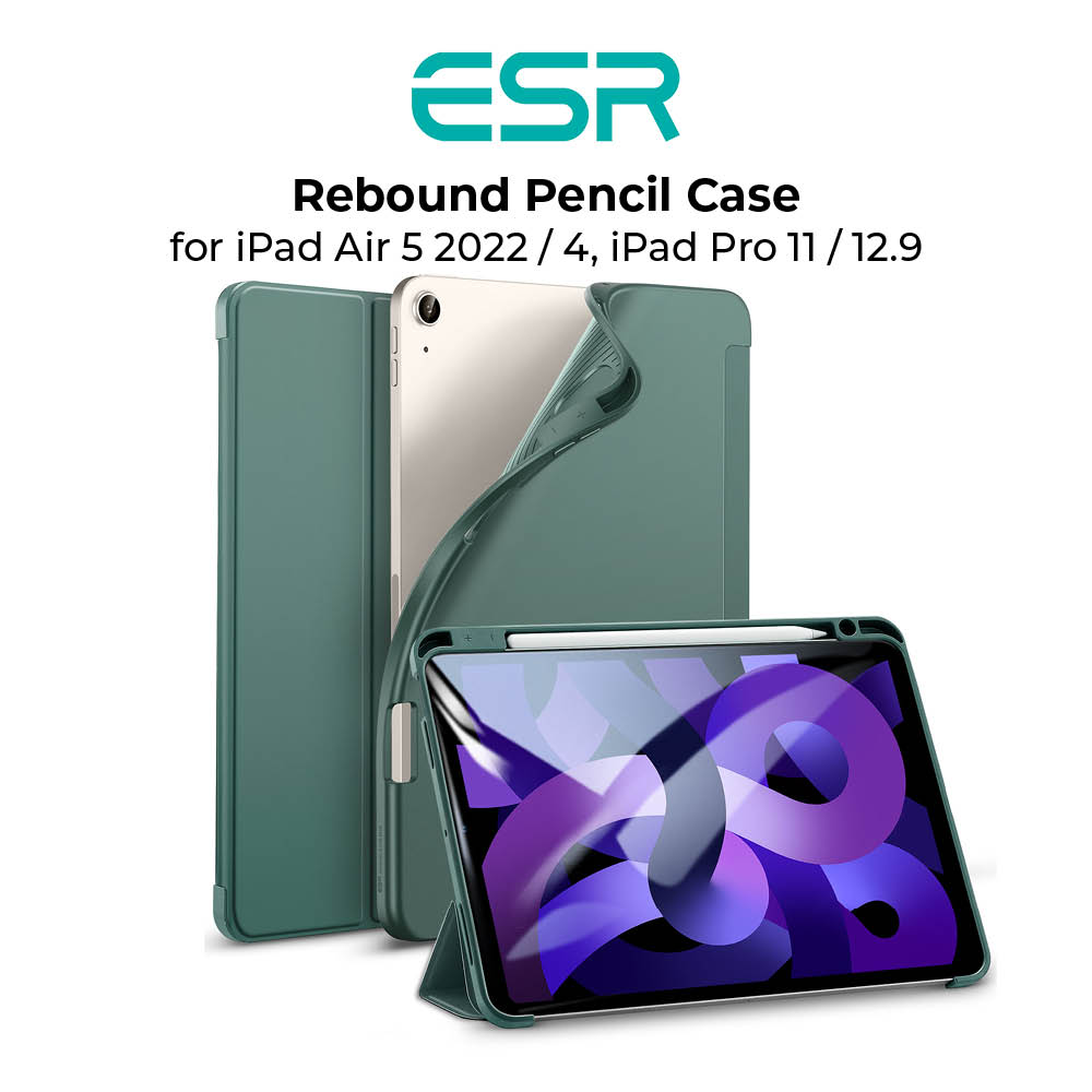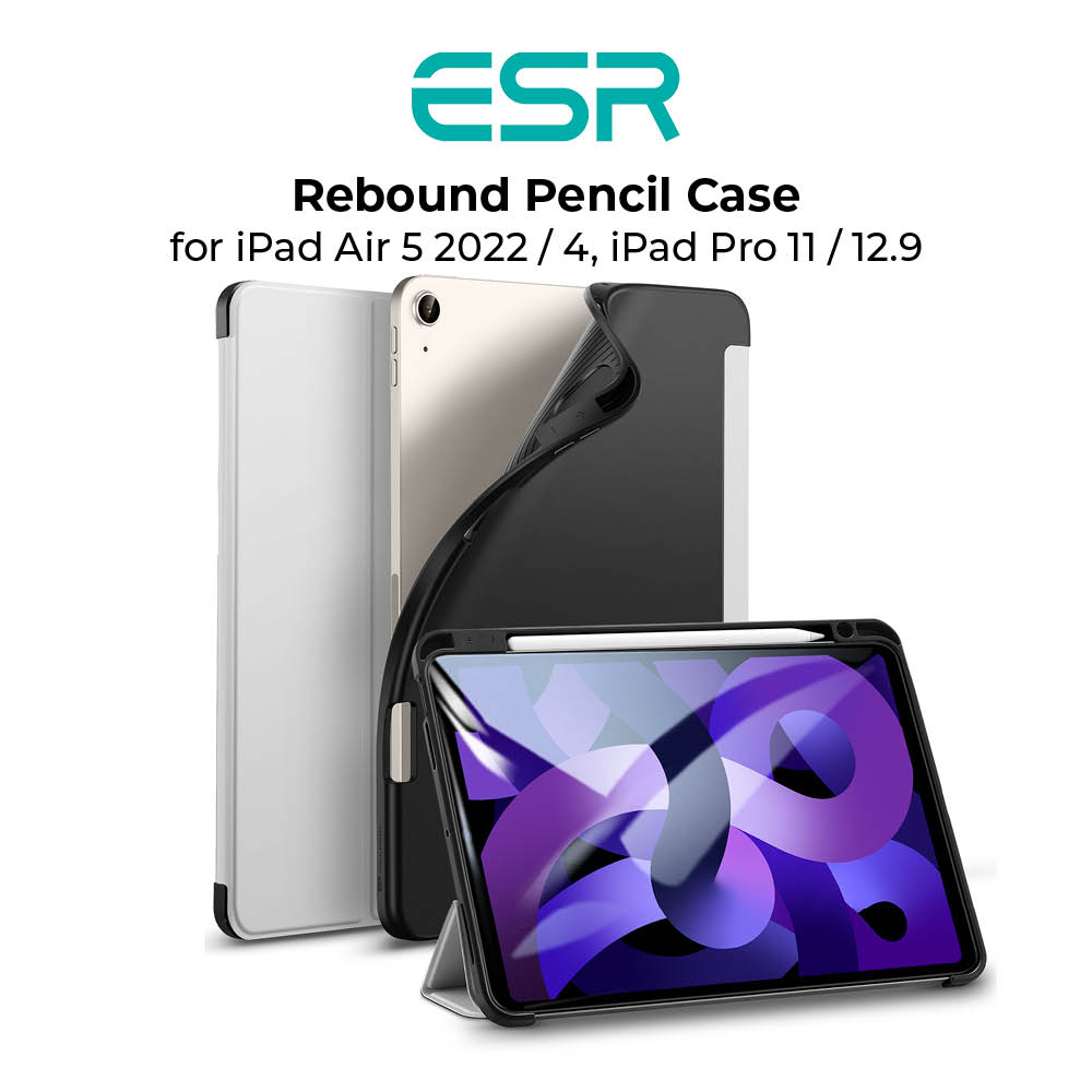 ESR Case for iPad Air 5 2022 iPad Air 4 iPad Pro 11 iPad Pro 12.9 Case with Pencil Holder, Rebound Pencil iPad Case with Soft Flexible TPU Back Cover, Auto Sleep/Wake, and Multiple Viewing Stand Modes