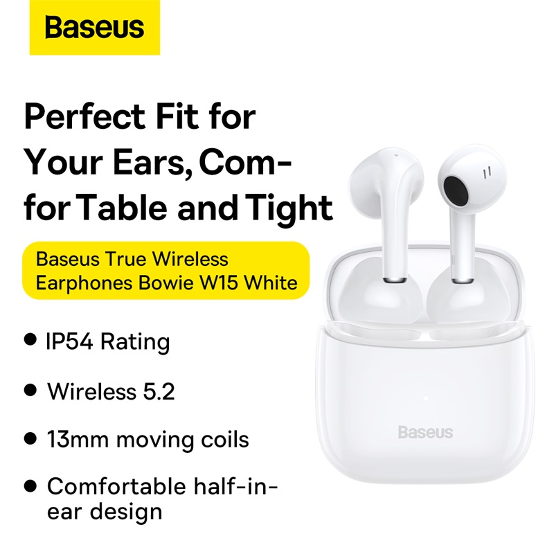 Baseus W15 TWS Earbuds Bluetooth 5.2 Wireless Earphones IP54 Rating Waterproof Headphones Smart Touch Sport Headsets with Microphone