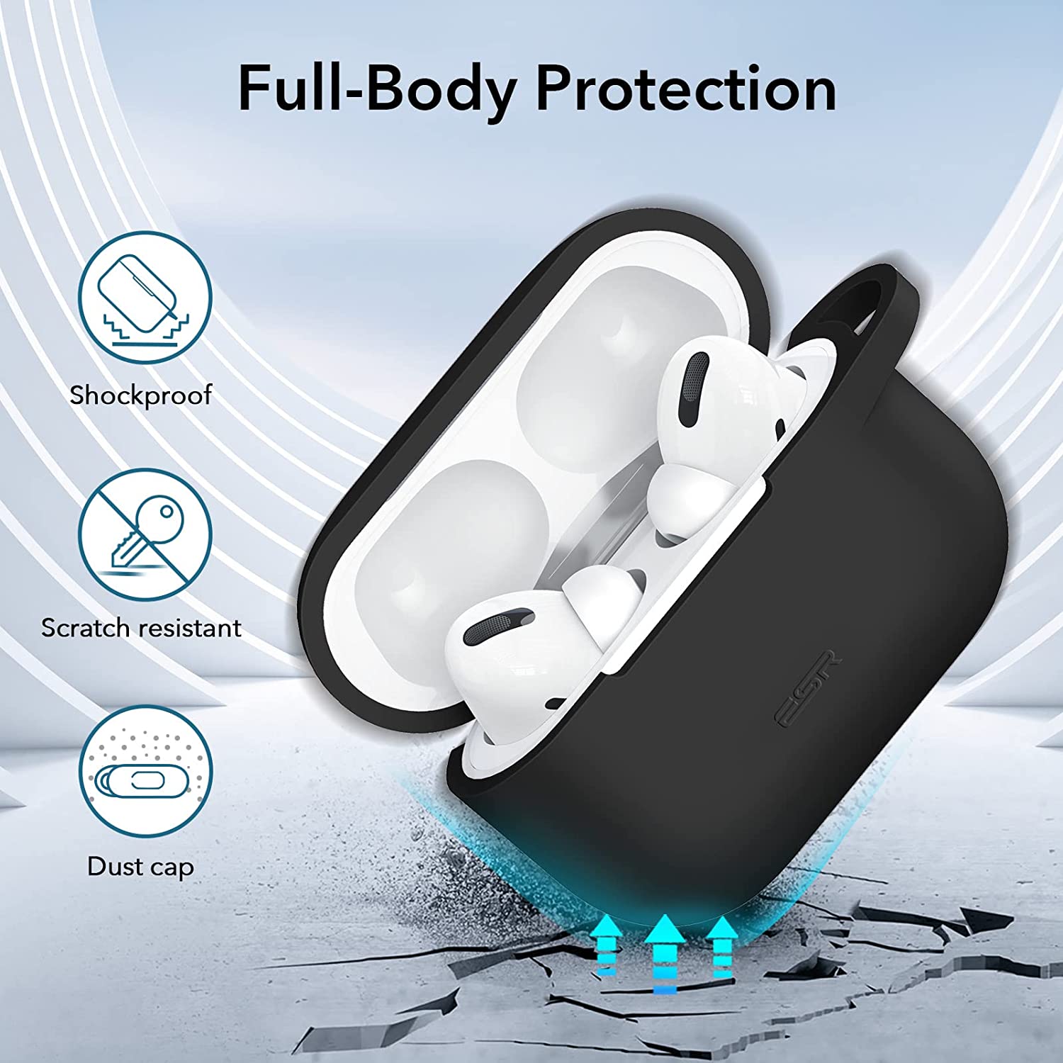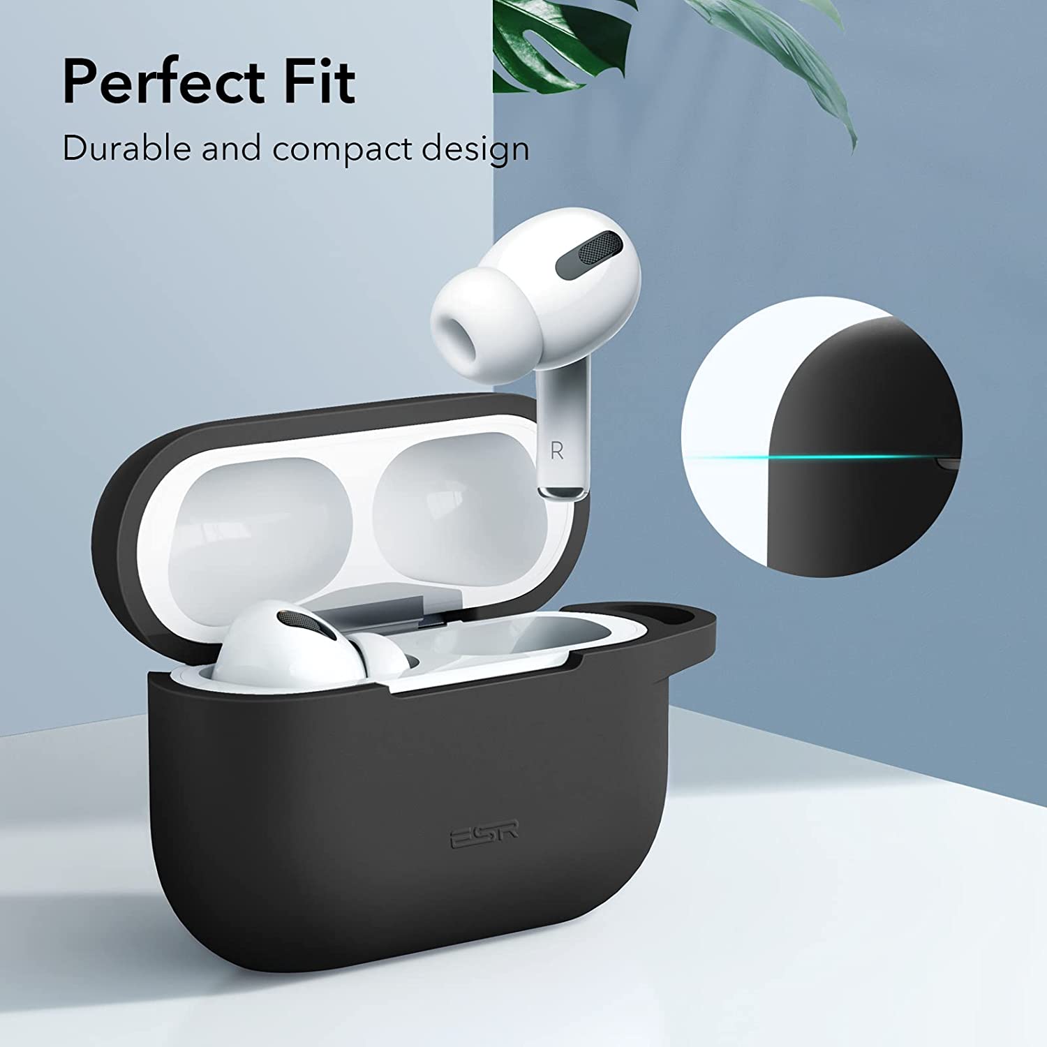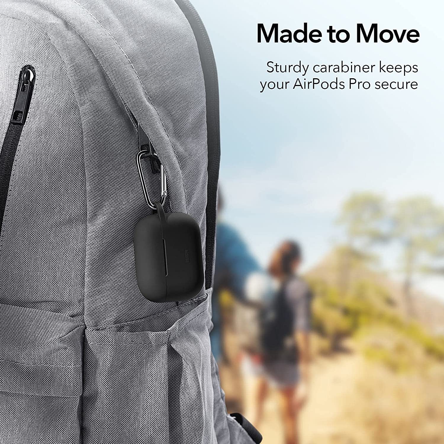 ESR Compatible with AirPods Pro Case, Silicone Case with Carabiner for AirPods Pro Charging Case [Front LED Visible] [Shock-Absorbing] Soft Slim Case – Black