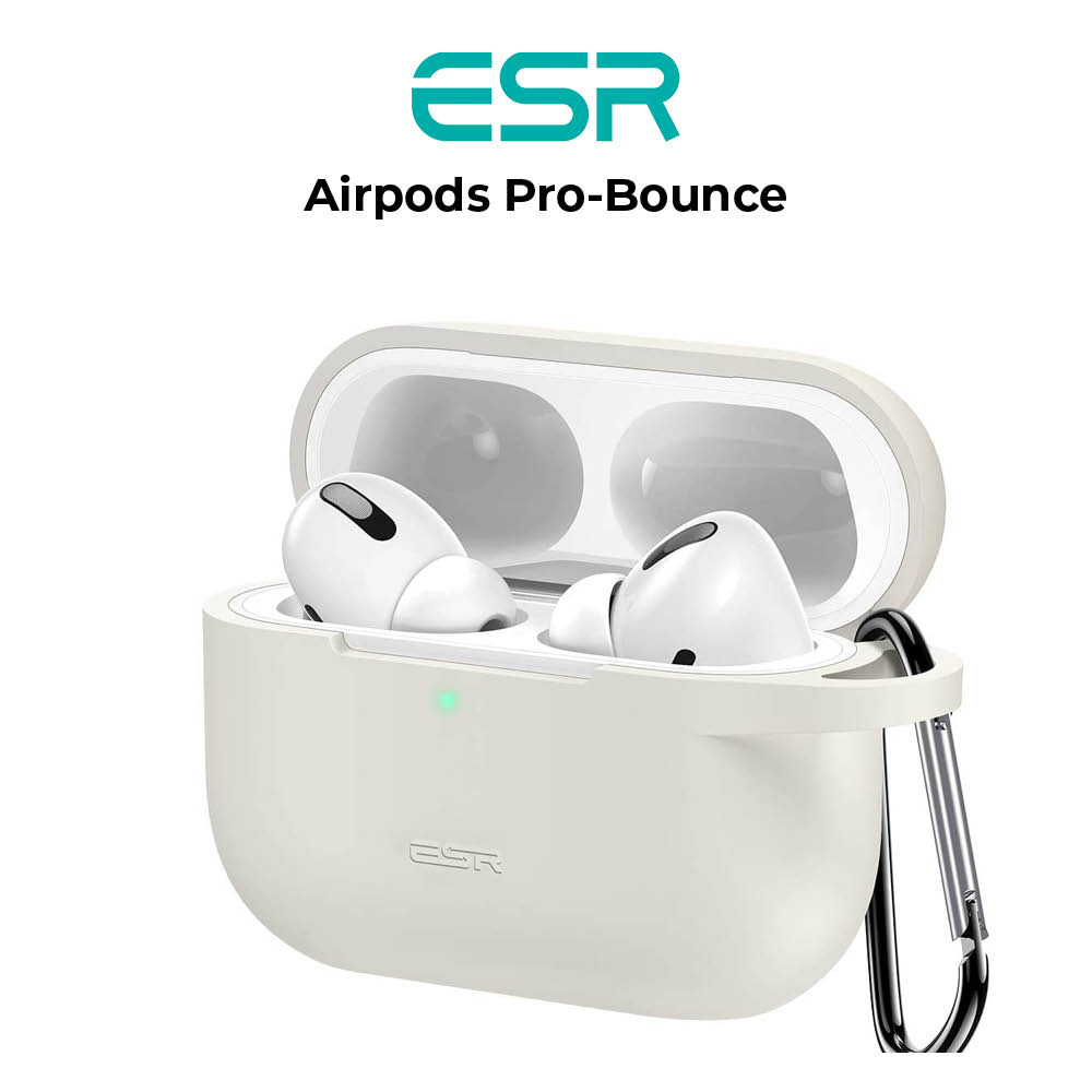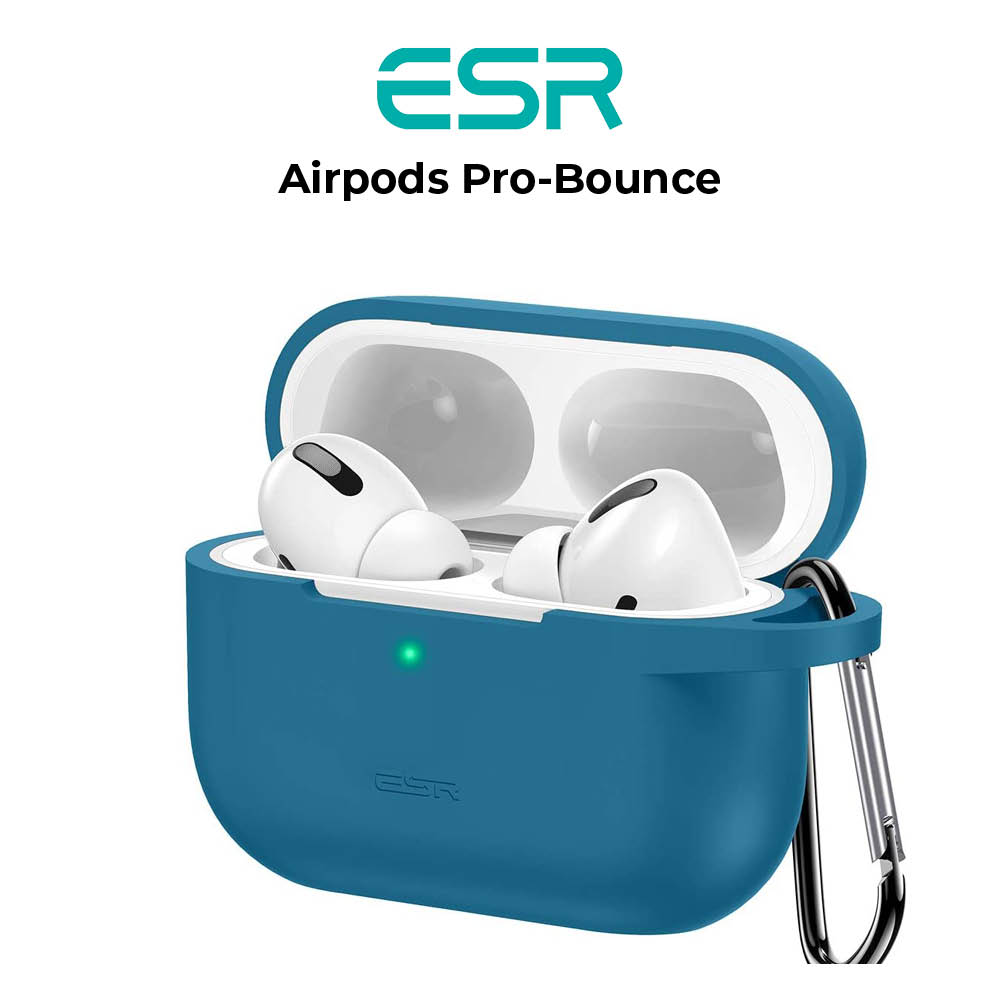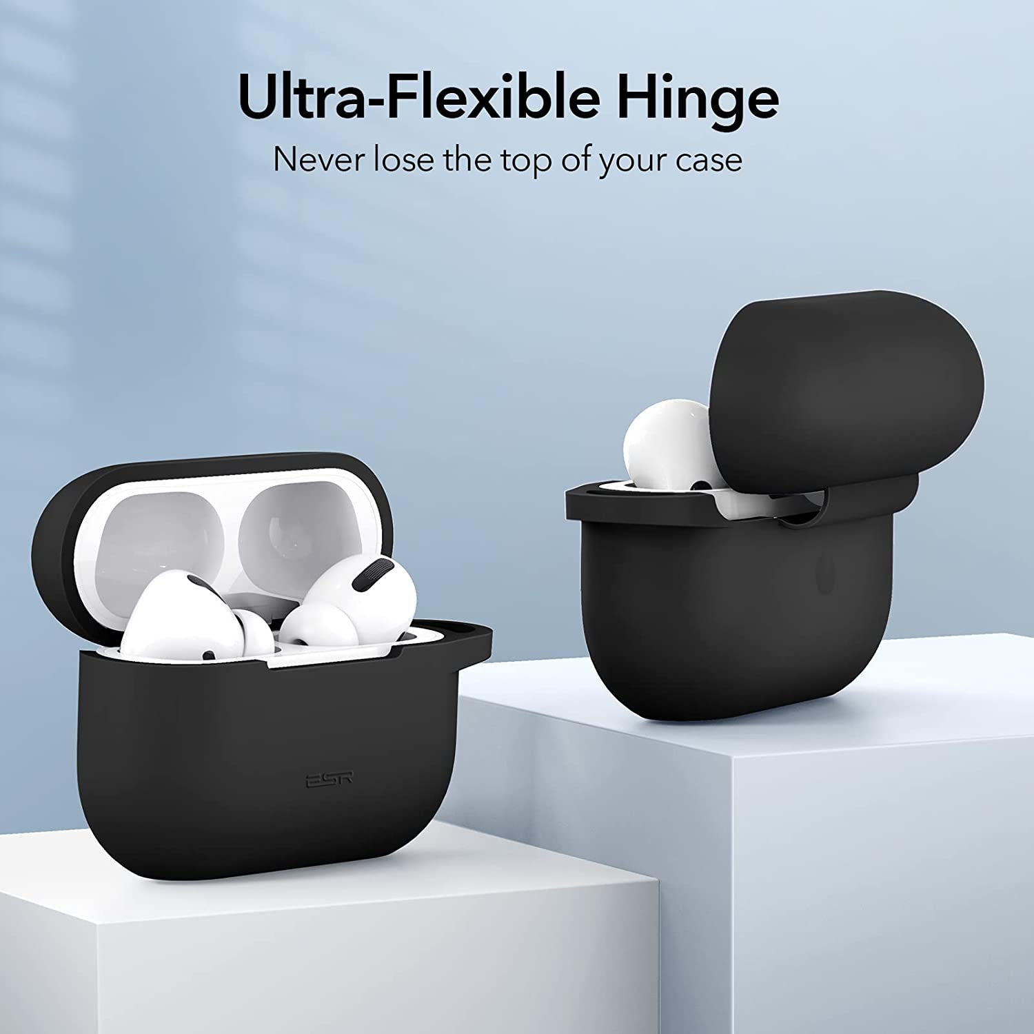 ESR Compatible with AirPods Pro Case, Silicone Case with Carabiner for AirPods Pro Charging Case [Front LED Visible] [Shock-Absorbing] Soft Slim Case – Black