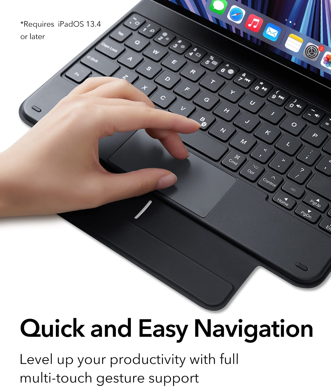Quickly and easily navigate your iPad with the built-in precision trackpad. Full multi-touch gesture support lets you redefine productivity by allowing you to edit documents, build presentations, and browse the web with unparalleled speed.