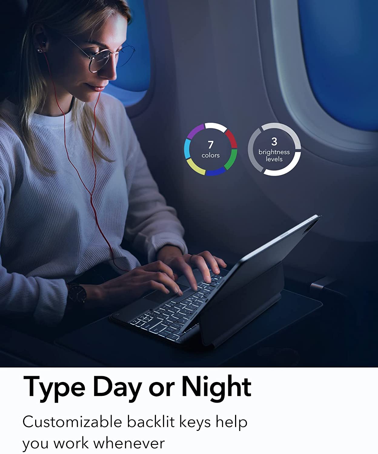 See your keyboard in a new light with 7 backlight colors and 3 brightness modes. The spacious layout and customizable backlit keys let you work comfortably at any time of day.