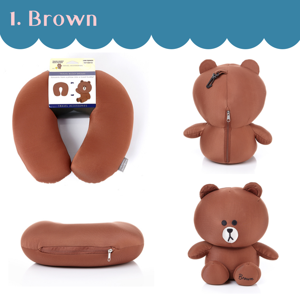Use it as a neck pillow on an airplane, bus or train, then transform it into a Brown/Sally doll when you're lonely and bored!