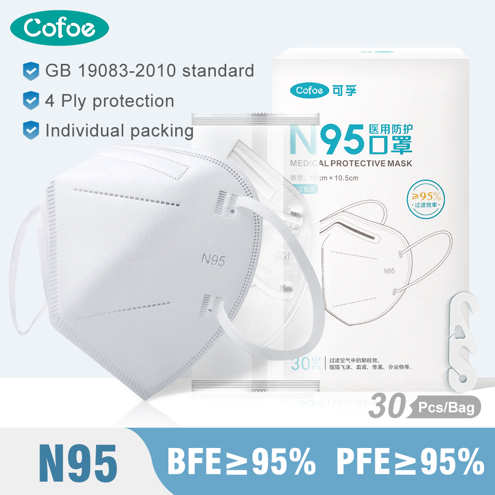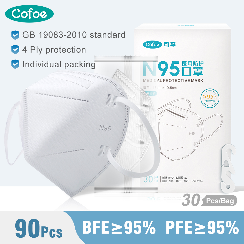 Cofoe N95 Medical Protective Duckbill Face Mask 4Ply STERILIZATION Grade 3D Anti-virus Anti Particle Respirator Facemask Use in High Exposure Risk Environments Original Masker Face Shields Mouth Cover