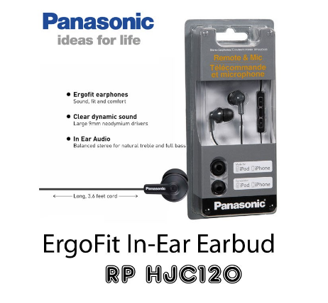 Panasonic RP-HJC120 Wired Earphone | In-Ear Headphone With Volume Control And Microphone