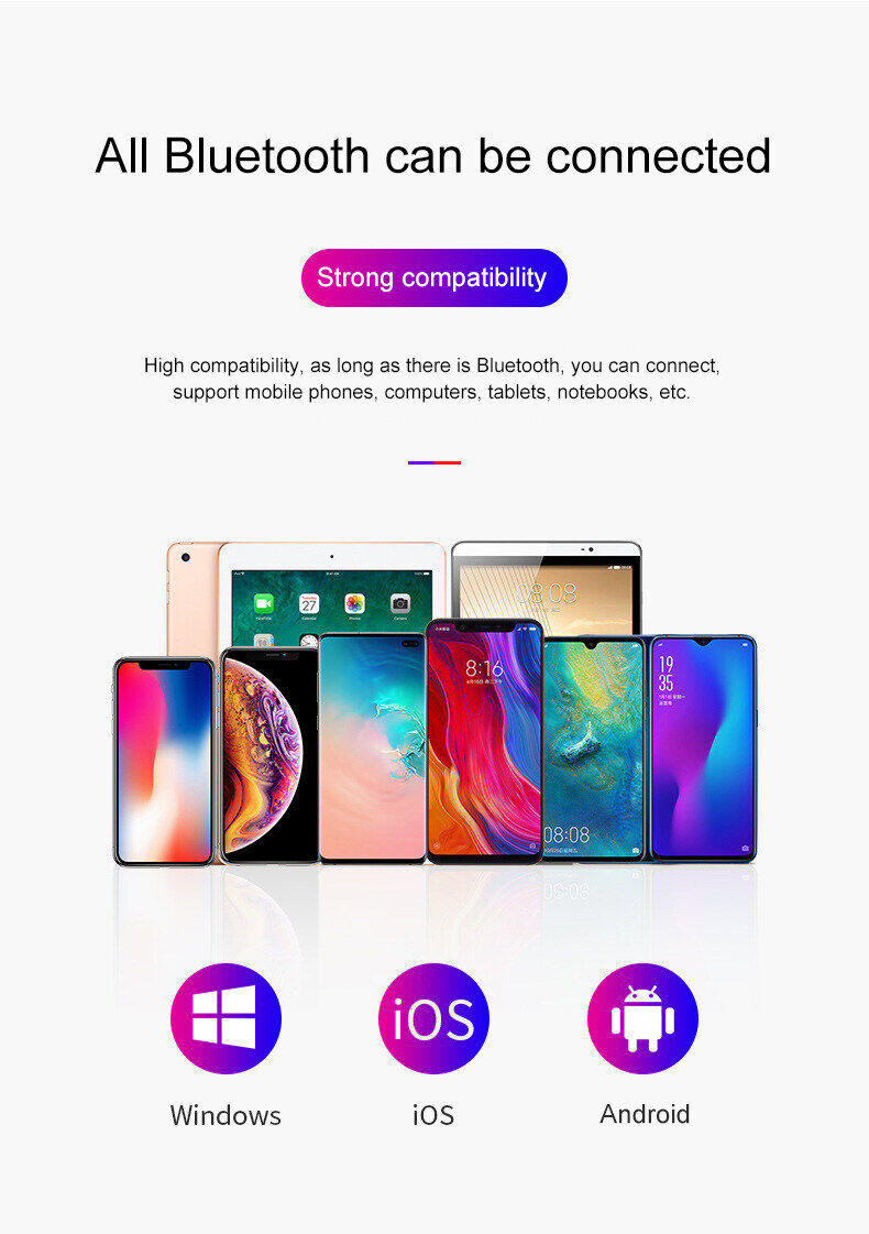 Intelligent compatibility: Compatible with IOS/Android/Windows system,support almost all mobile phones, laptops, tablets, PC, notebooks and other bluetooth devices, zoom meeting,movies, etc.