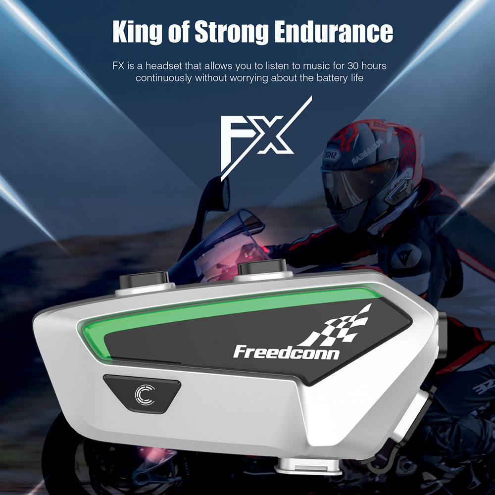 Feature: 1. 5.0 dual-mode 3-core low-power chip, support 3rd party connection2. Multi-group intercom, best for 6 persons, the intercom distance is 2 kilometers.3. 2-person music sharing4. Colorful lights5. CVC intelligent noise reduction6. Equipped with high-fidelity dynamic stereo headphones7. IP67 waterproof8. 1100mAh high capacity batterySpecification:Frequency: 2.4 GHzWeight: 55.2gDimensions: 88 x 53 x 31 mm/3.3.46x2.09x1.22"Battery capacity: 1100mAhStandby time: After 15 minutes of standby, it will enter the super power saving state, and the machine will automatically shut downContinuous working time: 22 hours (phone calls), 22 hours (Bluetooth intercom), 20 hours (playing music)Charging time: 2.5HCharging port: USB Type CCharging voltage: 5VCharging current: 450mAPlaying music current: 40mAVersion: V 5.0 (dual mode, 3 cores, low power consumption)Bluetooth search name: FXOperating range: 2 km (support for multiple people, 6 persons best, up to 10 persons)Supported protocol: HFPV1.6, HSPV1.2, A2DPV1.2, AVRCPV1.4, HSP, DIV1.3Intelligent voice prompt: supportConnect 2 phones at the same time: supportMusic sharing: support (between 2 persons)Prompt langugage: Support Chinese and English switchingVoice Control (Voice Call): SupportedColorful lights flashing: support (dynamic lights)Noise reduction: CVC (effectively filter out wind noise at high speed)Noise reduction capability: 120km/hFM frequency band: 50-115MHzWaterproof grade: IP67Automatic answering function of incoming calls: supportExternal audio intercom interface: support intercom K line connection (multi-person intercom can be performed after access)Sensitivity: -90dBmIntercom: Support multi-person intercomBluetooth connection with other brands: support (intercom can be connected with any third-party Bluetooth headset)Audio signal-to-noise ratio: ≥75dbAudio output type: StereoDistortion: ≤0.1%Audio performance: support AAC, MP3, SBC, stereoAudio output power: single 130mW, left and right channel output 260mW (maximum output)Color: Black, Silver (optional)Frequency band: 2.402GHZ--2.480GHz(ISM)Battery reminding function: supportHeadphones: Hi-Fi Dynamic Stereo HeadphonesProgram update: support USB upgradeWorking temperature: -10-+70 degrees CNote:There may be slight size deviations due to manual measurement, different measuring methods, and tools.The picture may not reflect the actual color of the item because of different photographing light, angles, and monitors.Package includes:1 X Bluetooth Receiver1 X Headset (2 in 1)1 X Clip1 X Clip with Tapes1 X USB Cable4 X Headset Tapes2 X Round Tapes1 X Manual