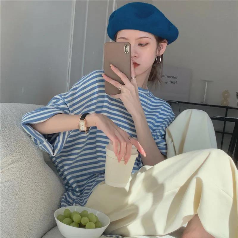 VONDA Women Summer Solid Color O Neck Casual Loose Knee-length T-shirt Dress (Korean Causal)