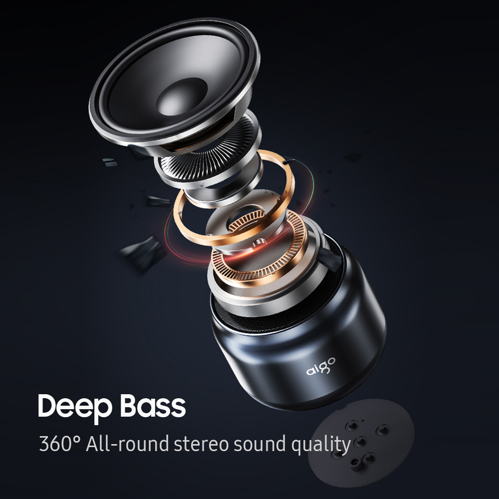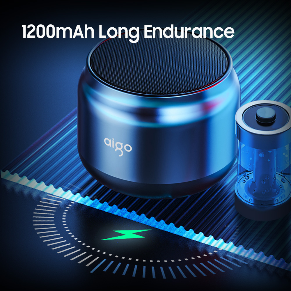 Item name: Aigo Wireless Speaker Color: Black Material: ABS BT version: BT 5.0 Wireless range: About 10meters (Obstacle-free) Battery capacity: 1200mAh Size: 79*79*62 mm Weight: about 240 g