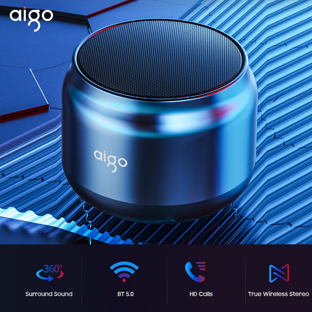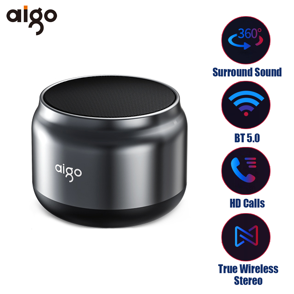 Aigo Wireless Speaker T98 BT 5.0 True Wireless Stereo Music Player with Microphone HD Calls Stereo Sound Deep Bass 1200mAh Long Endurance Speaker