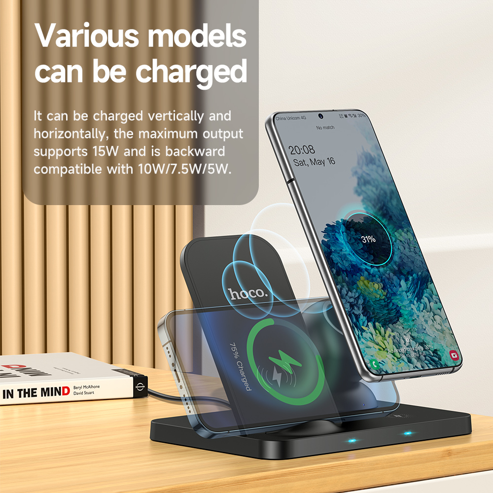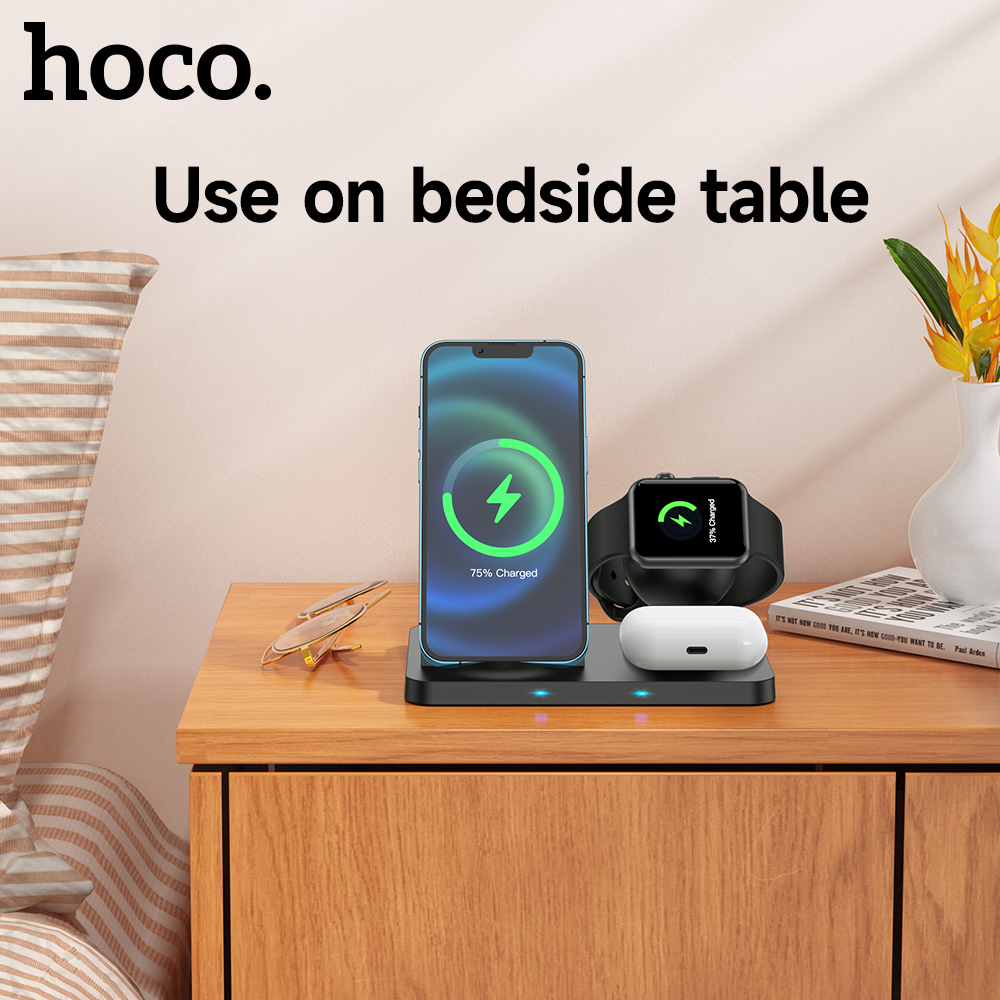 [NEW] HOCO Original Qi 3-in-1 Wireless Chargers 15W for iPhone 13 pro max Samsung S20 Xiaomi Fast Wireless Charging Dock Station Phone Holder for iPhone 12 11 pro max X XS XR 8plus