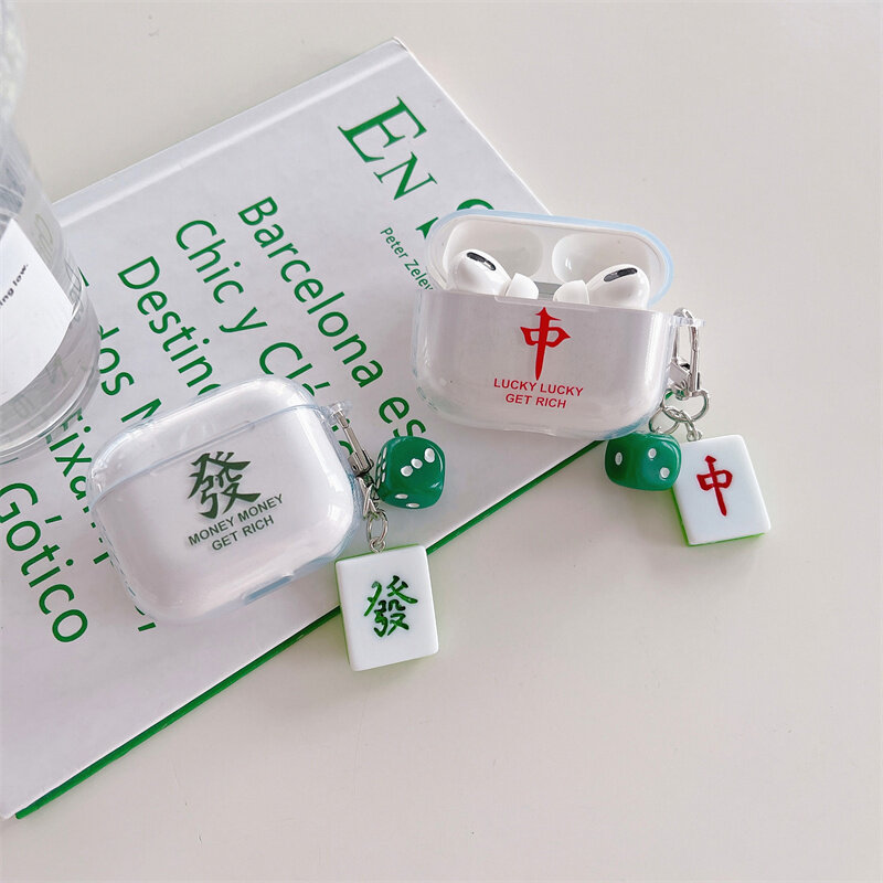 3D Cute Mahjong Case with Pendant for Airpods 3/2/1 Soft TPU Silicone Earphone Headphone Cover for Airpods Pro