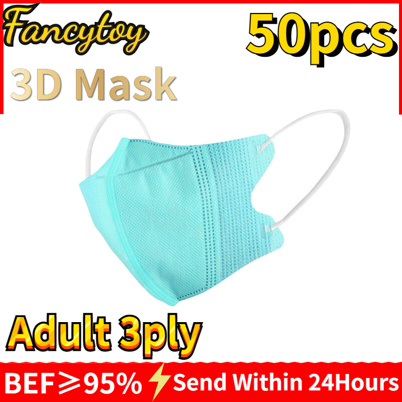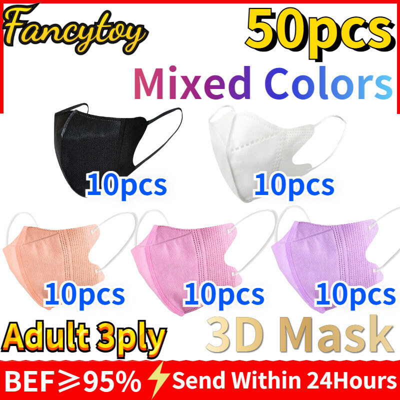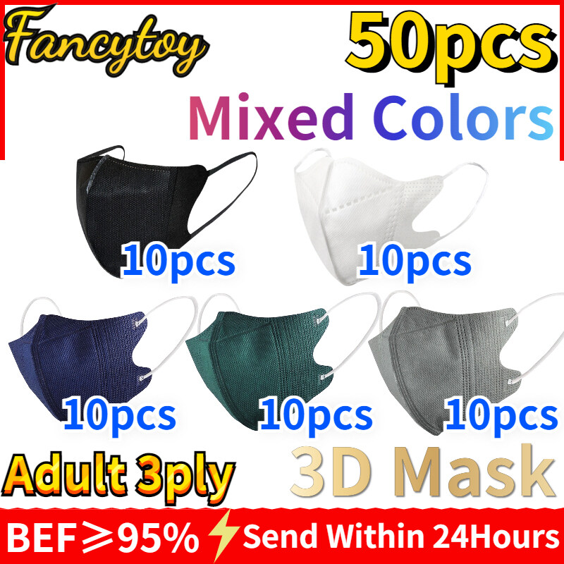 [Fancytoy] 50pcs Adult 3ply 3D Masks Mixed Color Dustproof Reusable Protective Unobstructed Breathing Duckbill Face Mask Comfortable Face Mask
