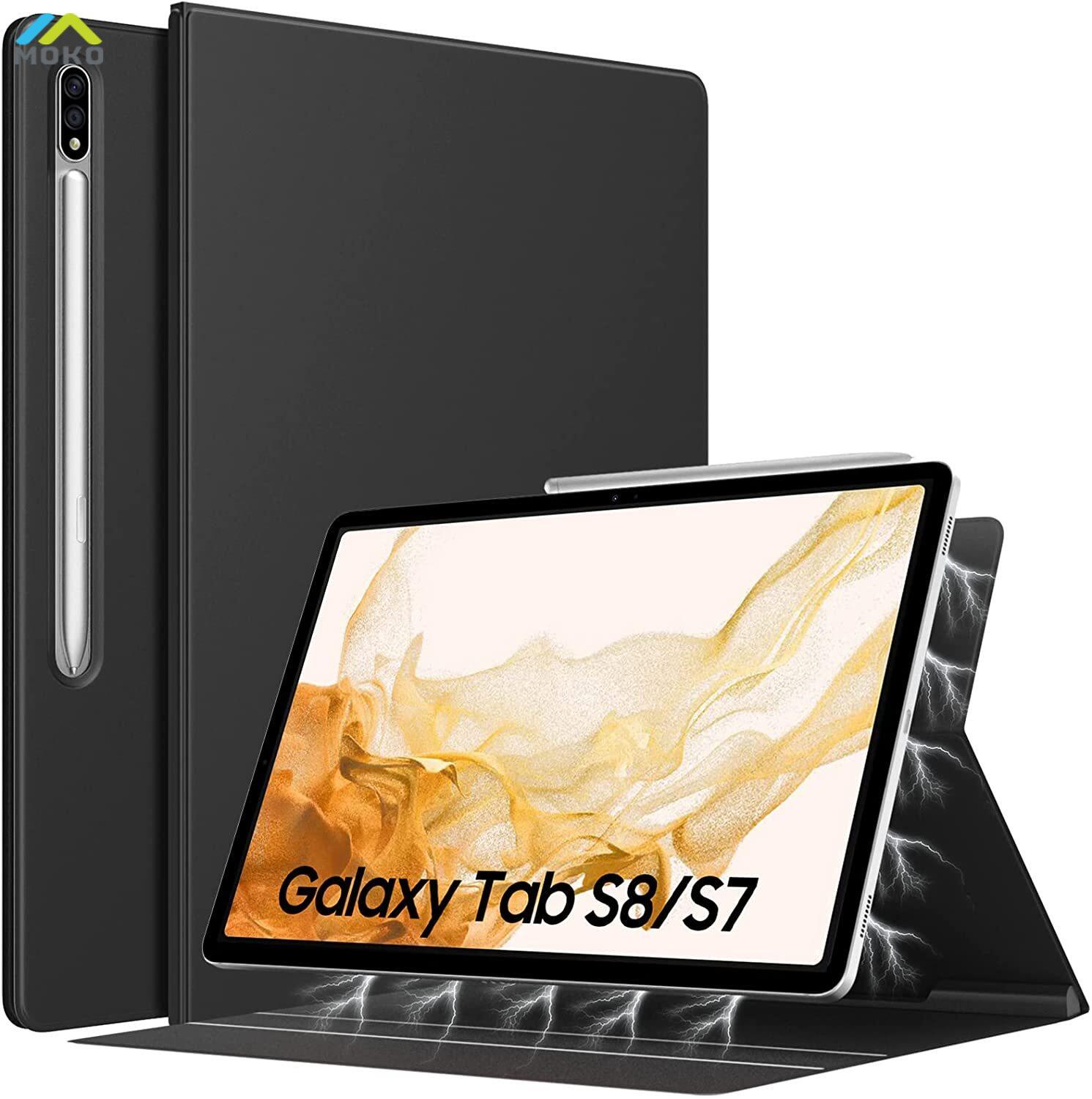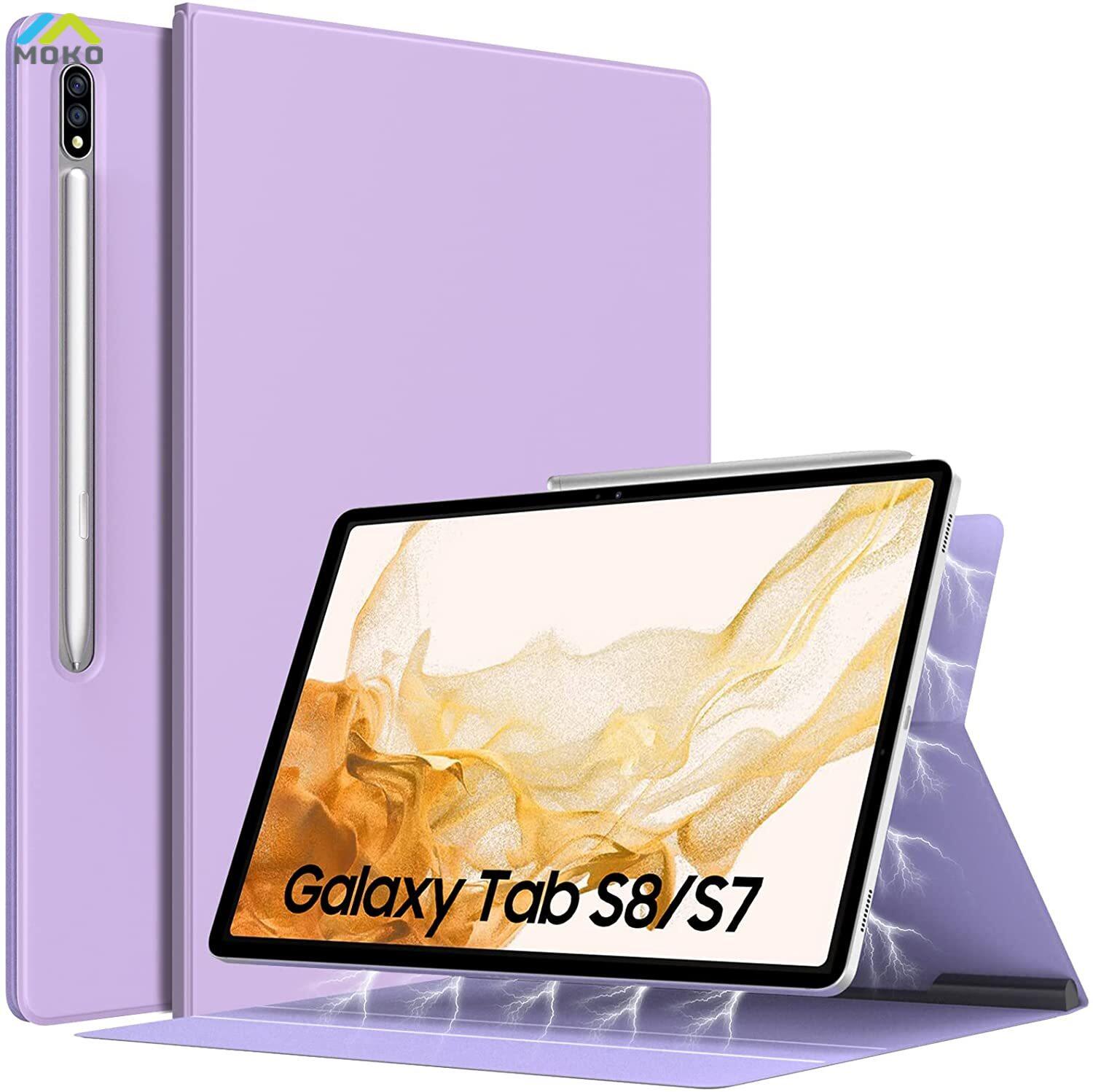 MOKO Case for Galaxy Tab S8 11 inch 2022 (SM-X700/SM-X706)/S7 2020 (SM-T870/T875) with S-Pen Holder, Slim Lightweight Magnetic Case with Auto Sleep/Wake Fit Galaxy Tab S8 Tablet, Light Purple