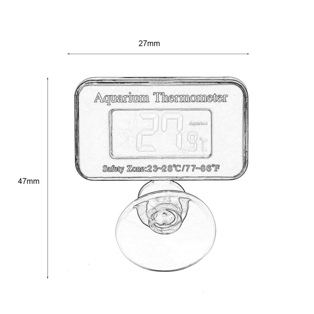 [Ready Stocks] Digital Submersible Fish Tank Aquarium LCD Temperature Meter Features: : Large LCD Display Big Numbers, Submerge probe into fish tank to measure water temperature (Submerge probe only, do not submerge in water) : Highest/Lowest Temperature Alarm Function with LED light flashing for 5 seconds. When the real temperature is still goes beyond the alarm temperature range you set, the alarm with light occurs every minute. : Minimum and Maximum temperature memory stores high and low readings with MIN/MAX button. Description: ℃/℉ changeable Specifications: Temperature range:-50~ +70°C Display:Celsius Only Accuracy: ±1°C Operation Environment: 0°C - 50°C Power supply: Button Battery( DC1.5V) (Not included) Size:47*27*29 mm LCD size: 27*13 mm Color:Blue Packing Content: 1 x Submersible Aquarium Digital Notes: 1. Due to the difference between different monitors, the picture may not reflect the actual color of the item. We guarantee the style is the same as shown in the pictures. 2. Please allow slight dimension difference due to different manual measurement.