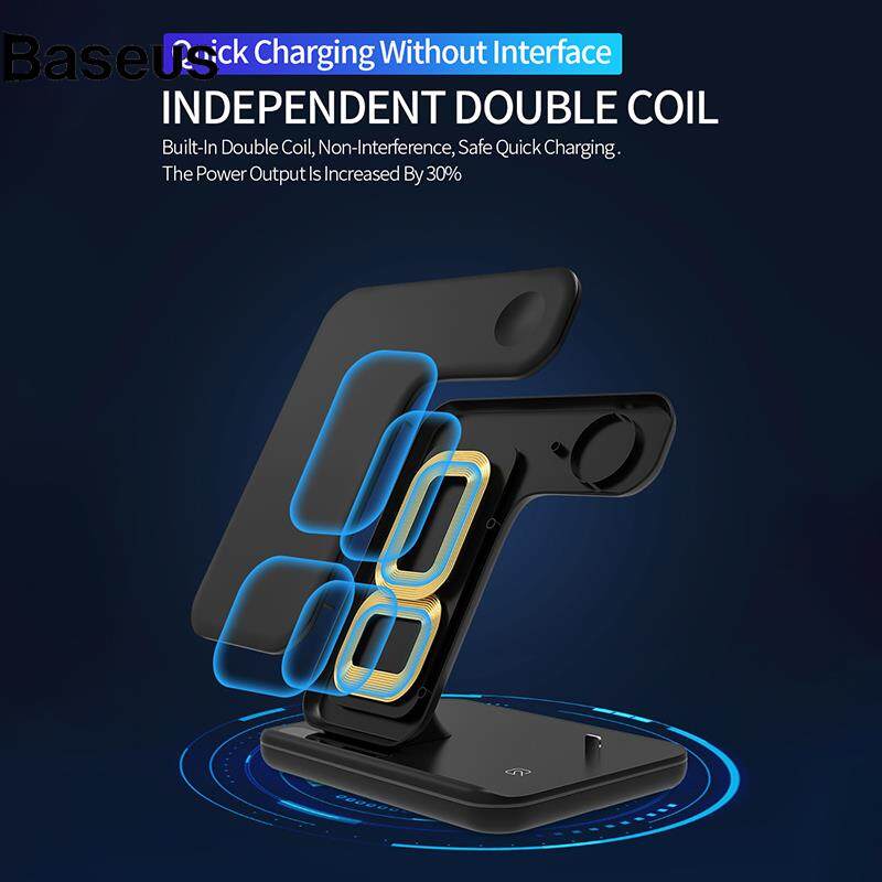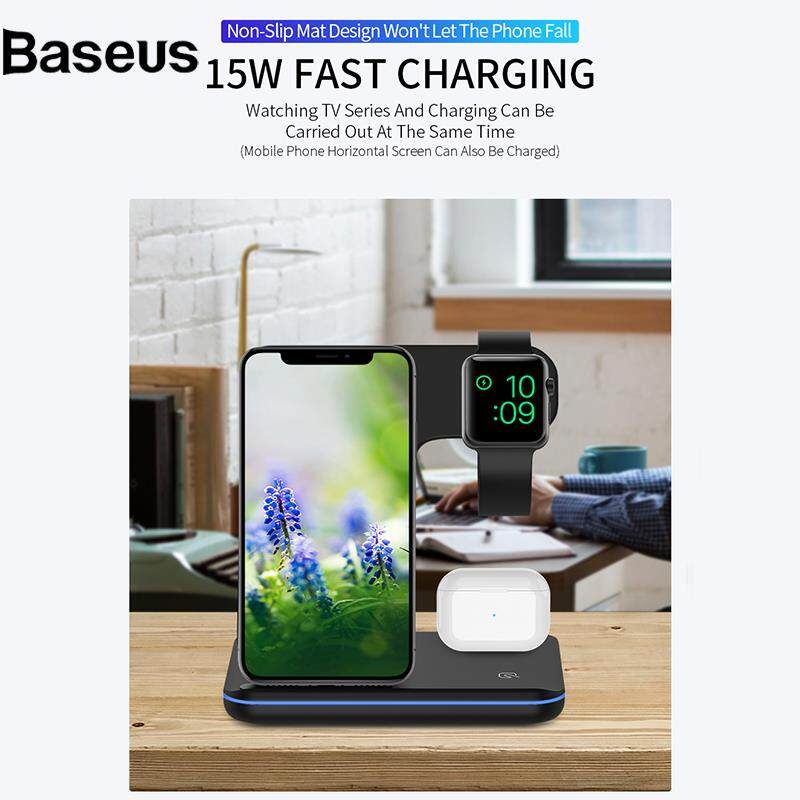 Baseus Z5 Upgraded 3-in-1 15W Wireless Charger Qi Fast Charging Stand Dock for iPhone Android iWatch AirPods