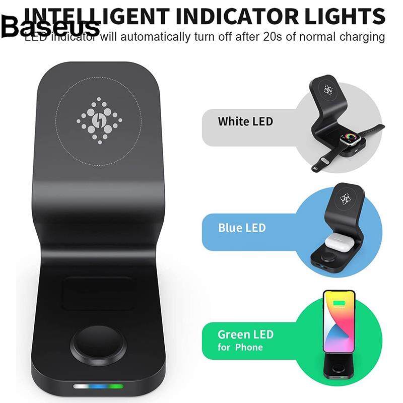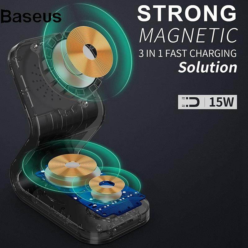 Baseus B16 15W 3-in-1 Qi Magnetic Wireless Charger Desktop Fast Charging Stand Dock for iPhone 12 Series/iWatch/AirPods Pro