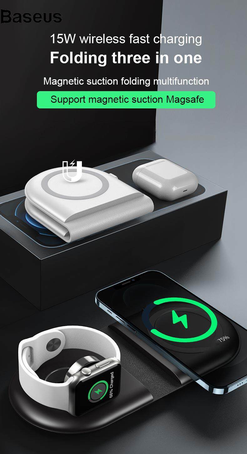 Baseus WS39 15W Folding Magnetic Wireless Charger Fast Charging Pad Double Dock Station for iPhone/Apple Watch