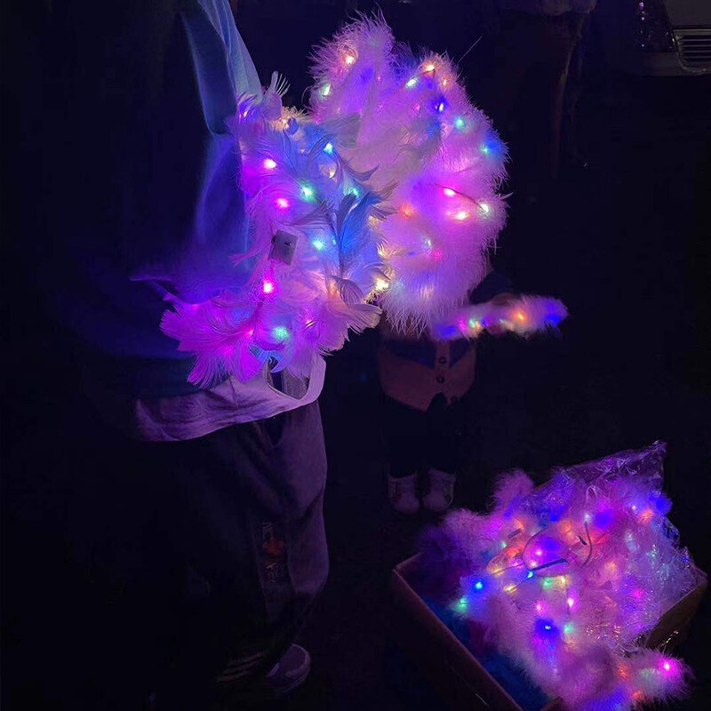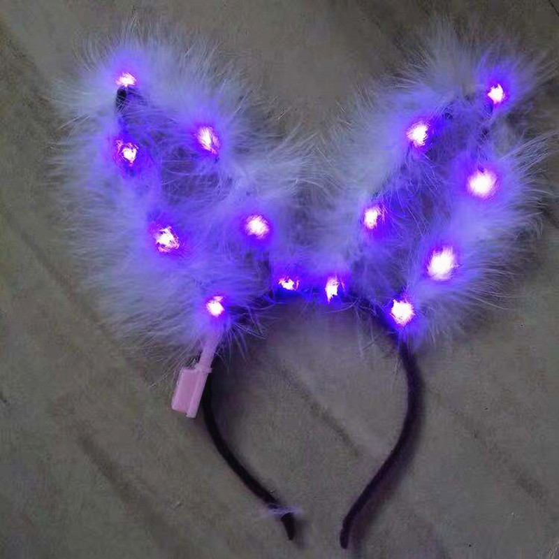 Fashion Plush Ears Led Girls Headband Feather Glowing Hairband Glowing Headwear Prop Supplies Holiday Party Gifts