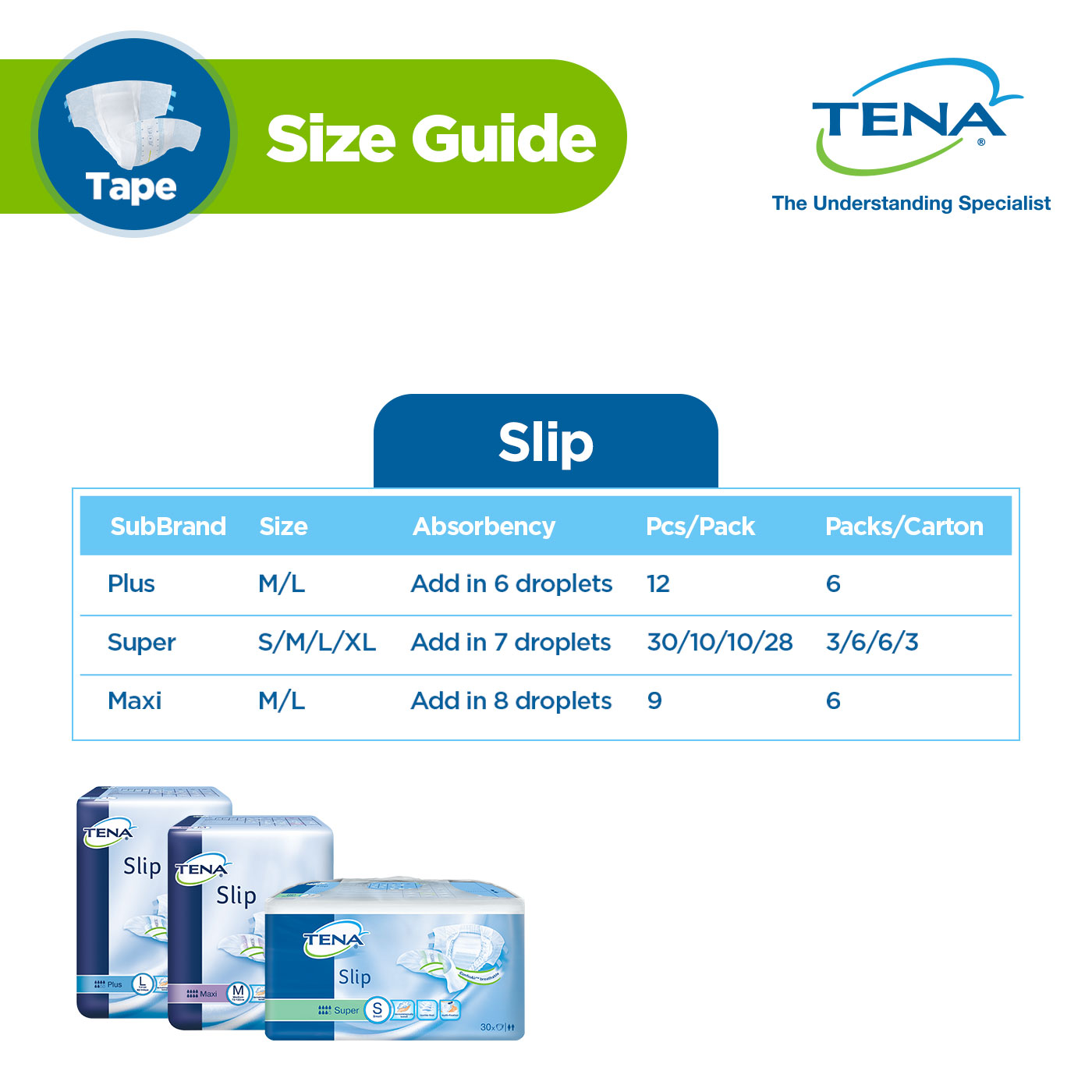 TENA Slip Maxi is an open all-in-one incontinence product with adjustable tabs for perfect fit, comfort and leakage protection. Unlike many standard adult diapers, TENA ProSkin Slip have soft textile-like material, a body-close fit and high leakage security and are ideal for someone less mobile or when changing in bed. Thanks to the FeelDry Advanced™ functionality the product quickly