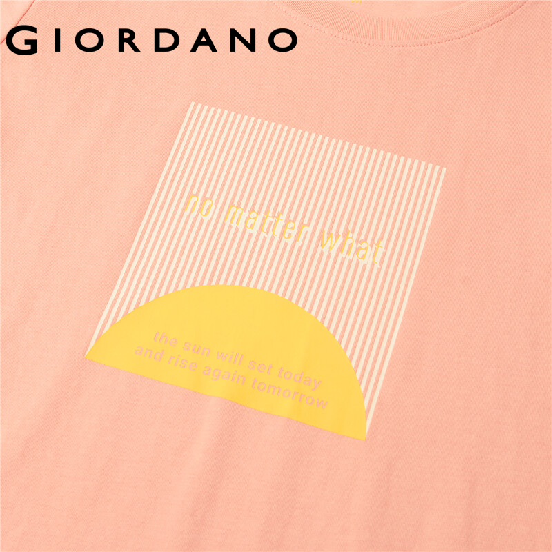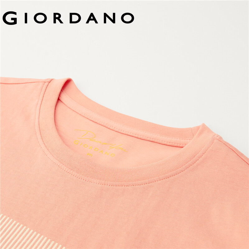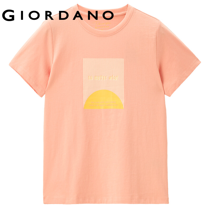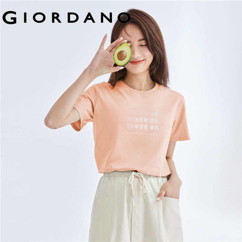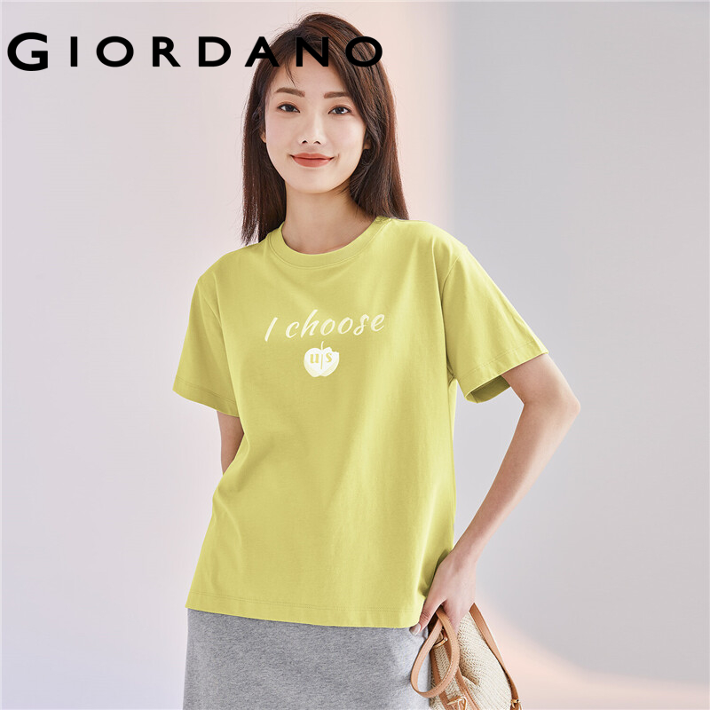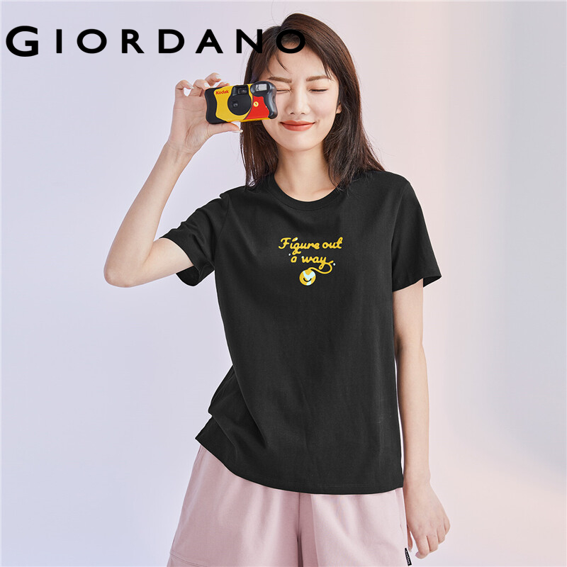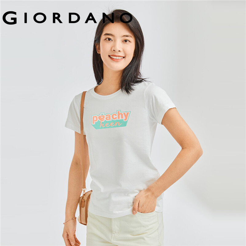 GIORDANO Women T-Shirts 100% Cotton Summer Short Sleeve T-Shirts Letter Print Crewneck Casual Relaxed Simple Basic Tee 05392213