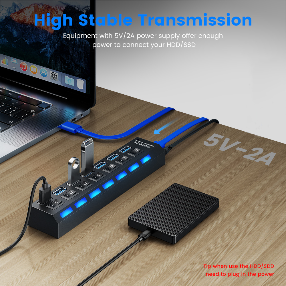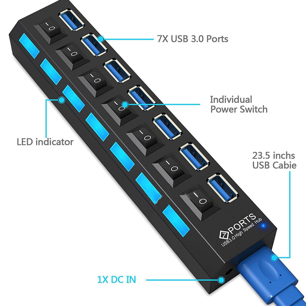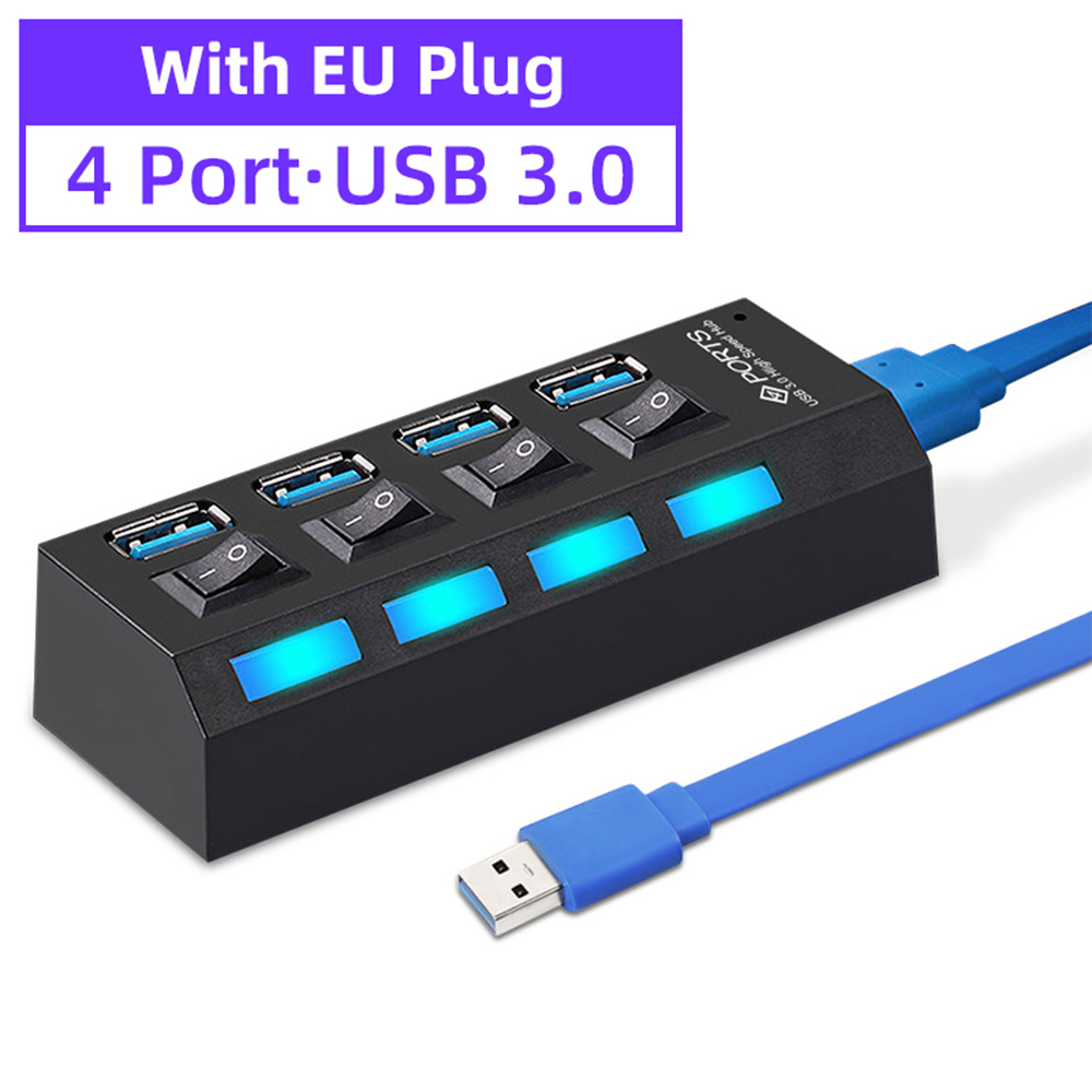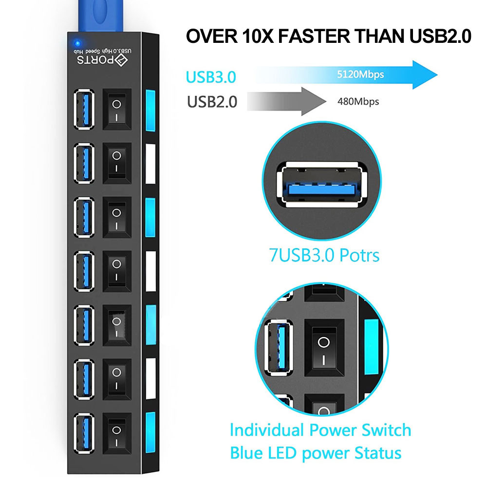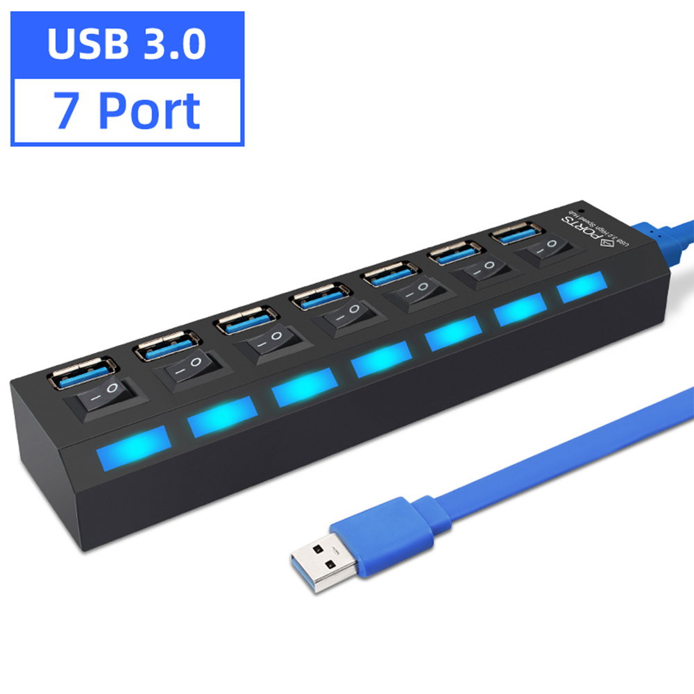 STIGER USB 3.0 HUB Multi USB 2.0 Splitter 4/7 Port Multiple Expander with Switch Power Supply Adapter for PC Laptop