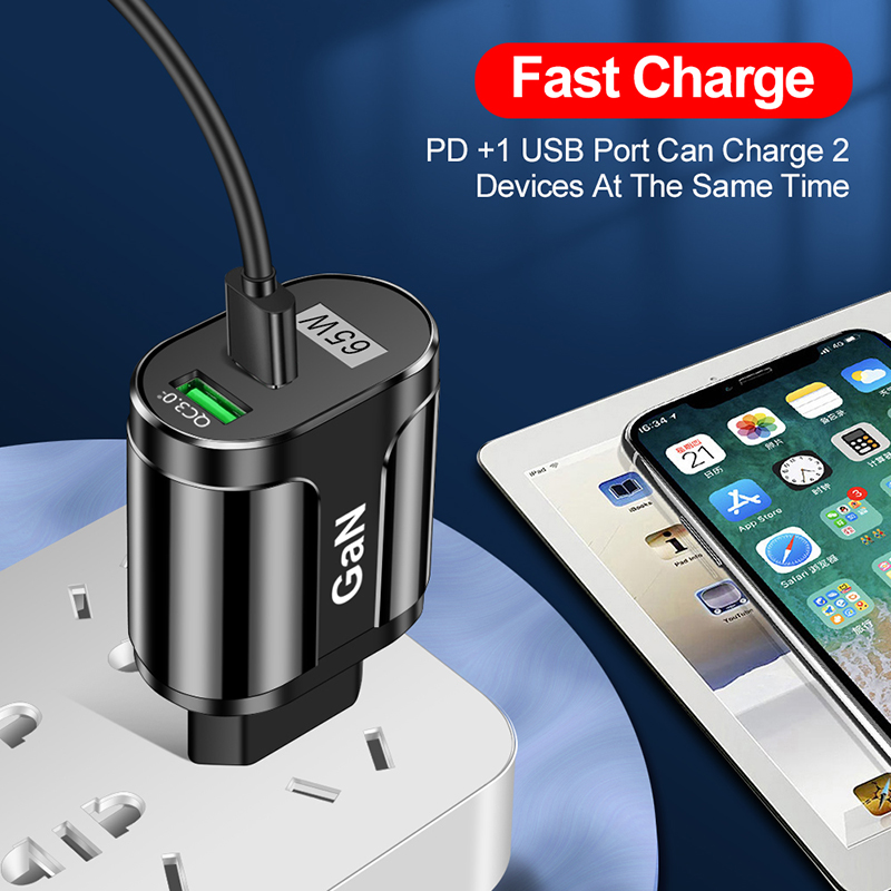 DISOUR Original 65W GaN Fast Charger Type-C PD+QC3.0 USB 5V/6.6A 9V/3A 12V/2.75A 20V/1.67A Quick Charging For IOS Android For Xiaomi Redmi iPhone Huawei Oppo Vivi Infinix Charge Cable