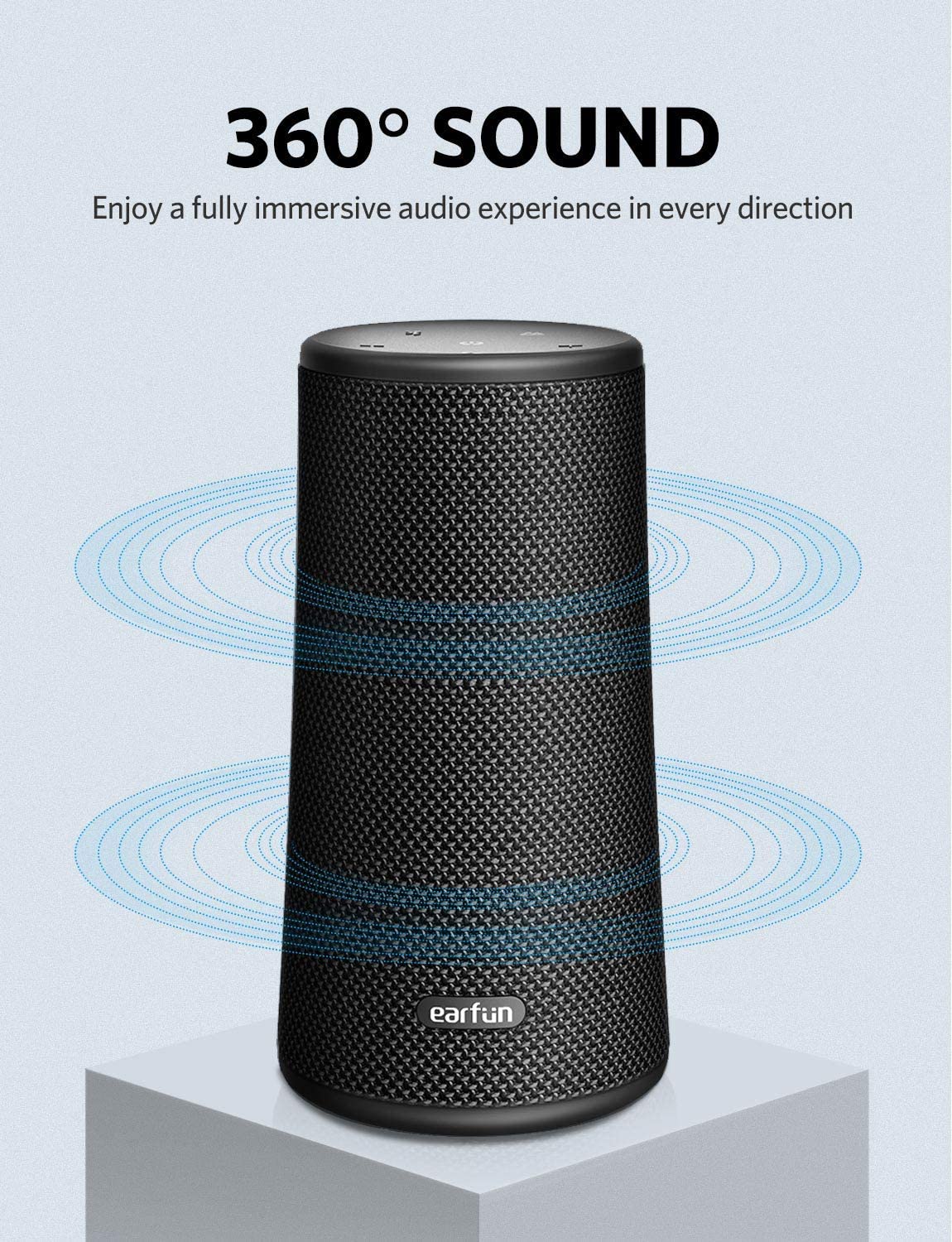 EarFun UBOOM 360 Degree Portable Rich Bass Speaker with in built microphone , indoor/outdoor play mode, IPX7 waterproof