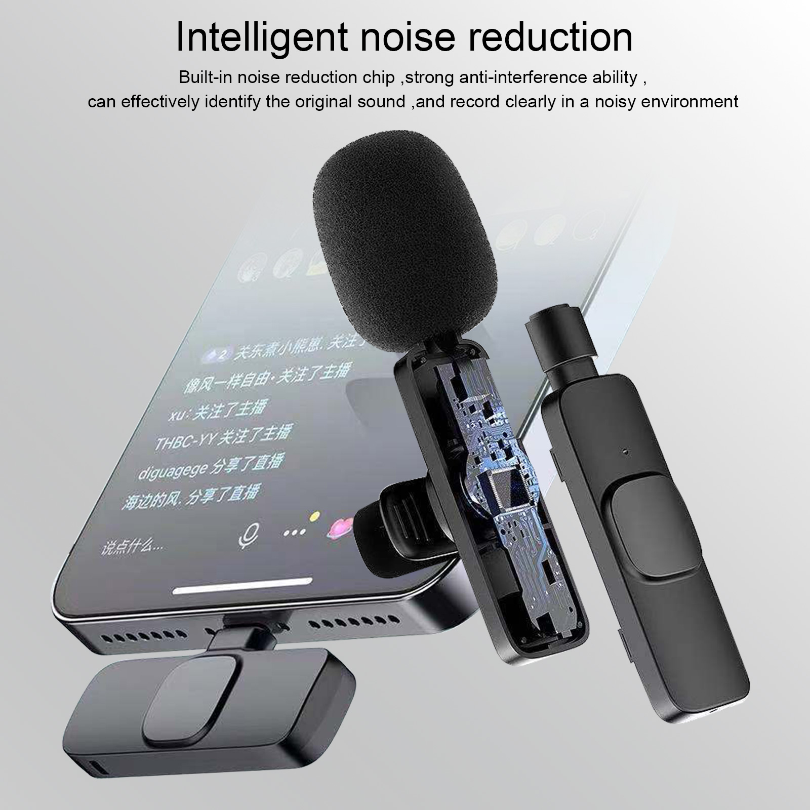 ANYTROX Wireless Microphone, Mini Lavalier Noise Cancelling Microphone for Live Streaming Video Recording Singing, Compatible with iPhone/iPad/Android Phone/Laptop/Tablet