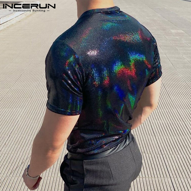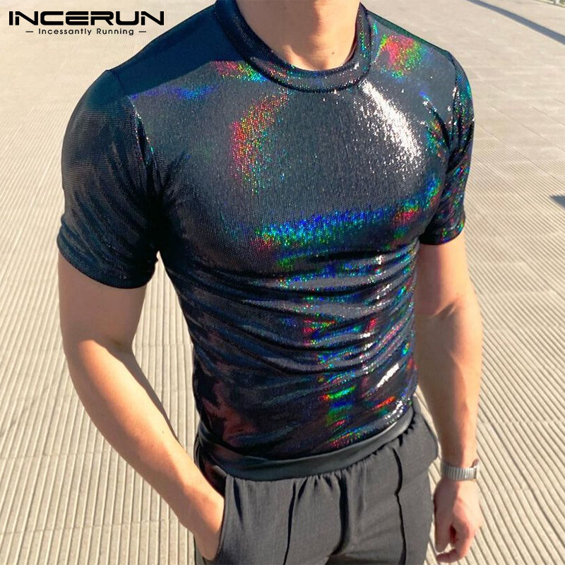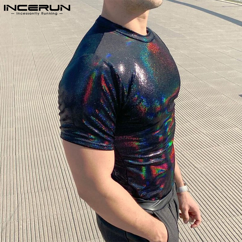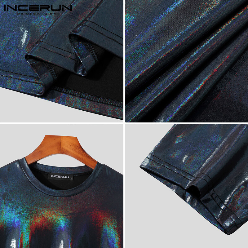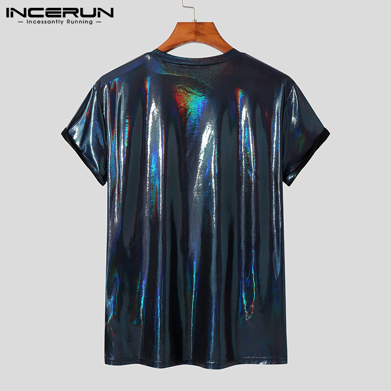Medussa INCERUN Men Glitter Shiny Wet Look Short Sleeve T-Shirt Fit Tee Top(Western Style)