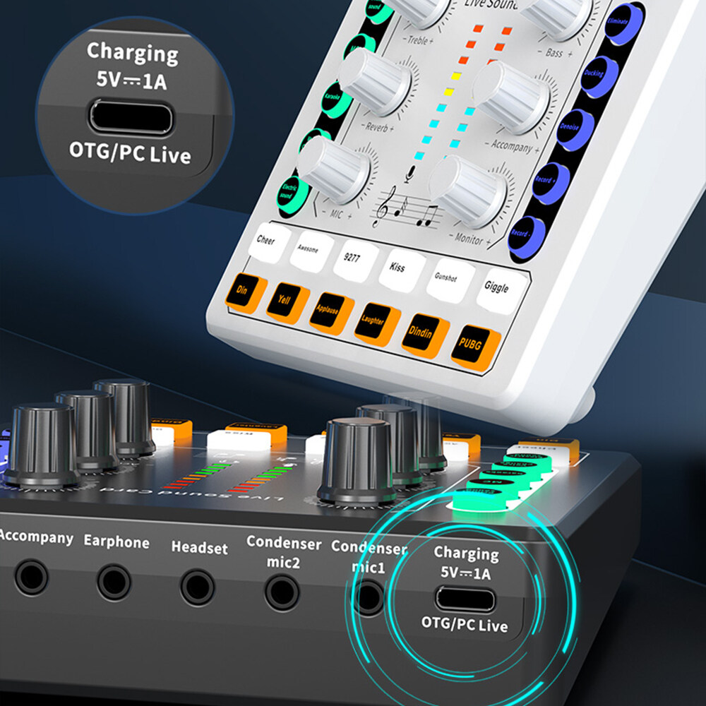 2. Live broadcast while charging, no need to switch cables. After plugging in the sound card, you can charge the mobile phone and the sound card at the same time to meet the needs of long-term live broadcast.