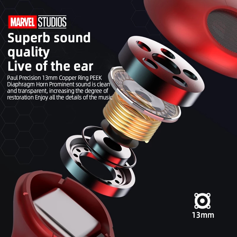 Marvel BTMV08 Bluetooth earbud TWS Wireless Bluetooth 5.3 Noise Reduction Anker Headphones Rotatable Metal Headset HiFi Stereo Sound Gaming Earphones