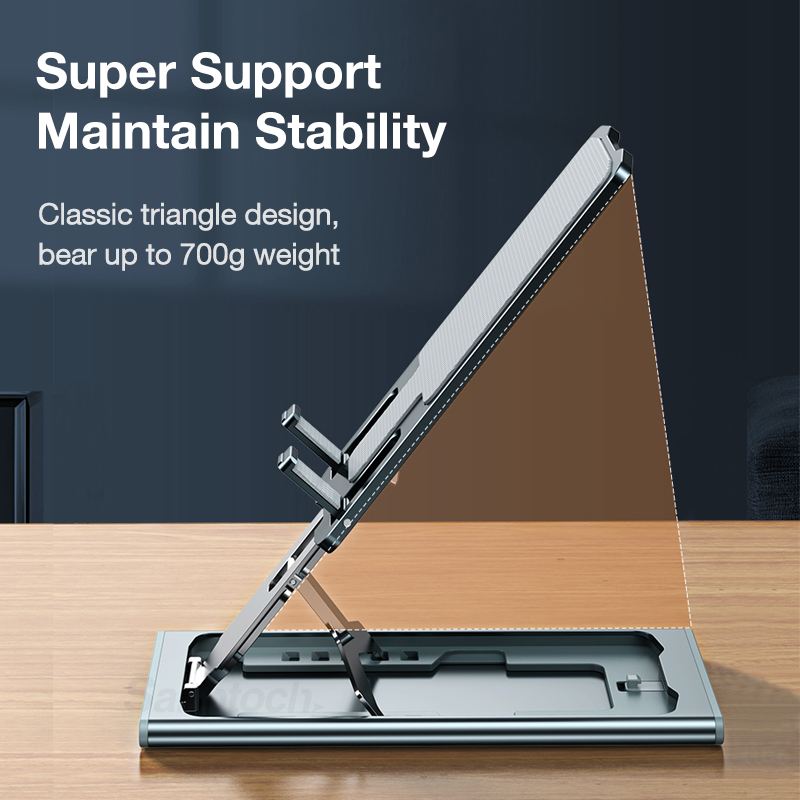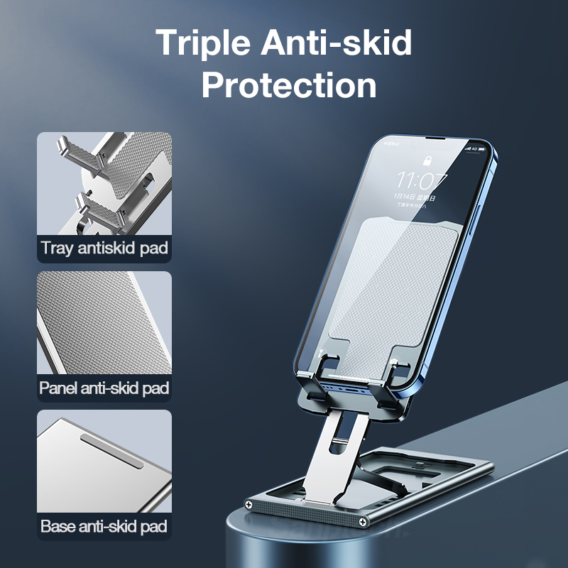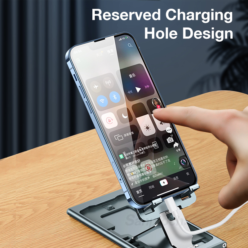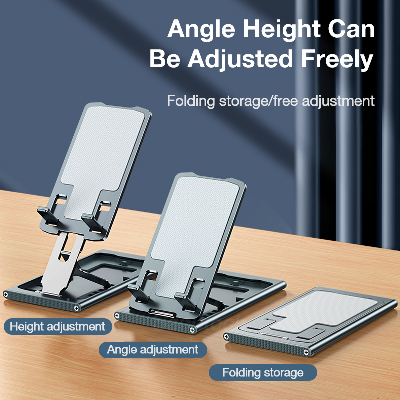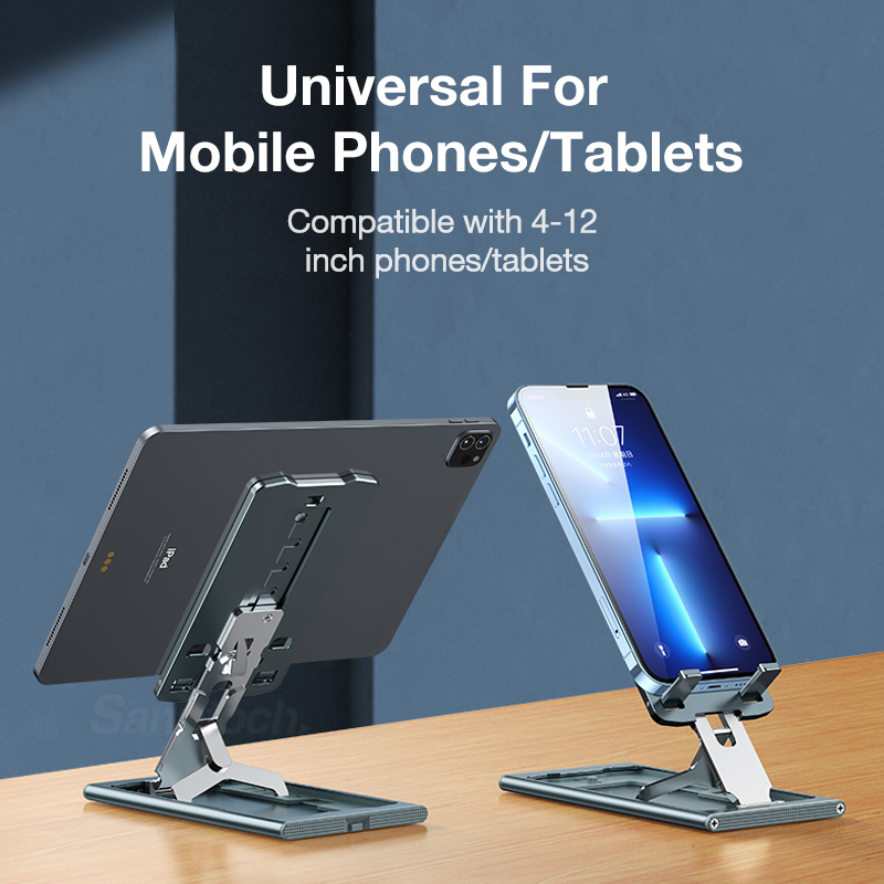 Sanptoch Slim Metal Alloy Folding Desktop Phone Holder For Mobile Phone / iPad Tablet Universal Adjustable Telescopic Table Stand
