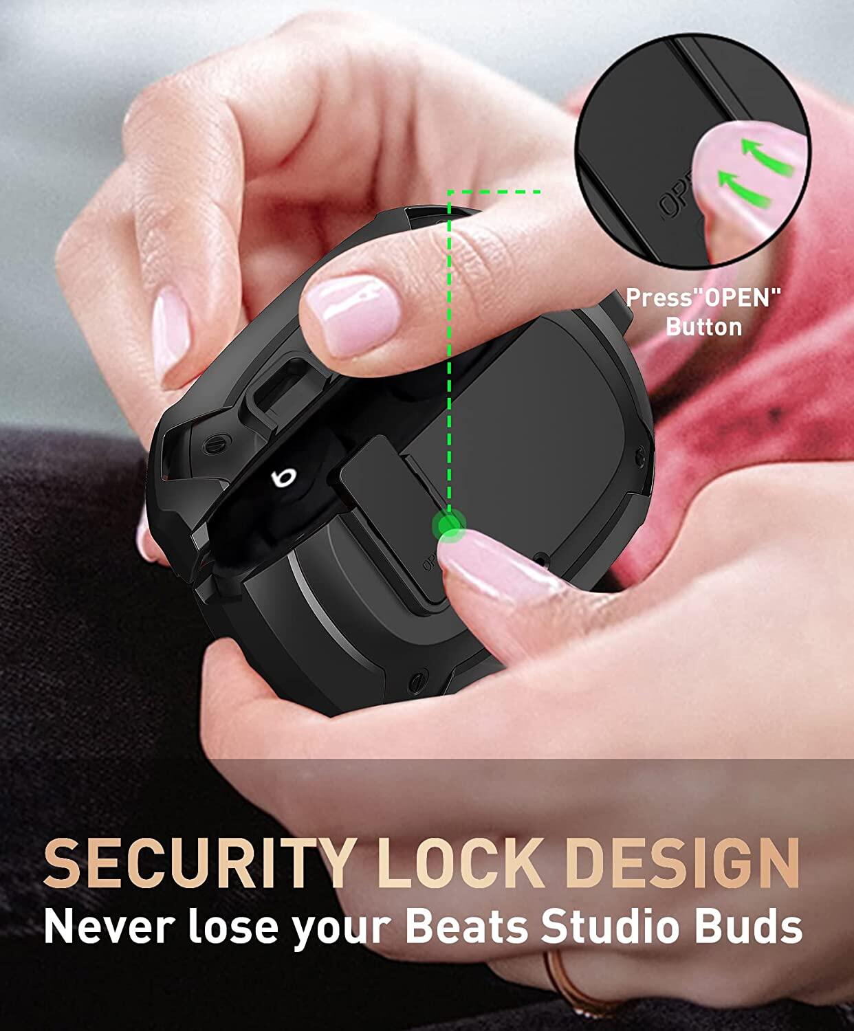 For Apple Beats Studio Buds Case switch Secure Lock Armor TPU Military Shell Protective with Keychain For Beats Studio Buds Case