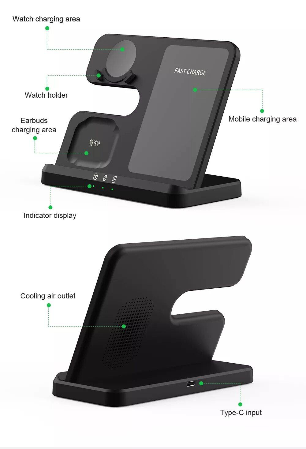 Samsung Wireless Charger Stand 3 in 1 wireless charger For Samsung Galaxy S22 Ultra Z Flip 3 Watch 4 3 Active 2 Gear S4 Buds Wireless Charging Station