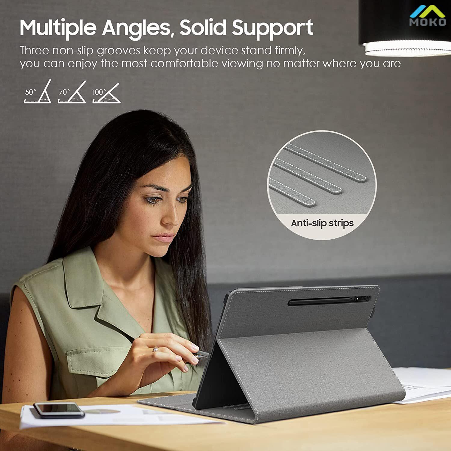 MOKO Case for Galaxy Tab S8 Ultra 14.6 Inch 2022 Release (SM-X900/SM-X906), Premium PU Leather Folding Stand Cover with Multiple Viewing Angles for Samsung Galaxy S8 Ultra Tablet
