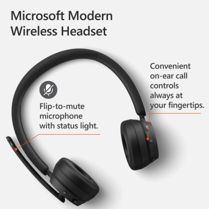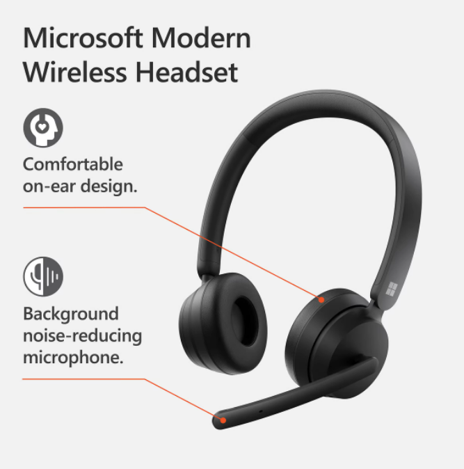 Connect fast and stay focused on Microsoft Teams calls and more with Microsoft Modern Wireless Headset, featuring high quality audio and voice, noise-reducing microphone, wireless convenience, and intuitive, on-ear call controls.