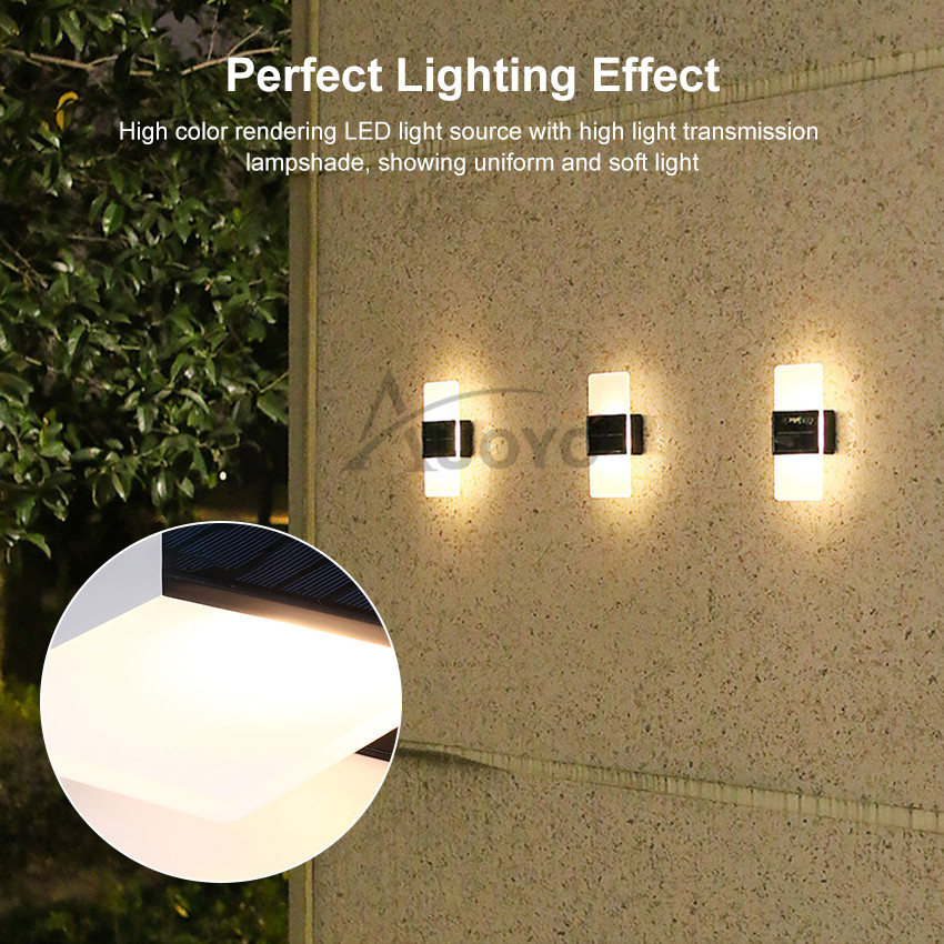 Auoyo Solar Lights Outdoor Waterproof Original Rechargeable Lamp Light Modern Indoor Decor Light Solar Wall Light 14/16LED Wall Lamp Up and Down Double Head For Outdoor Indoor Decorative Bedroom Corri