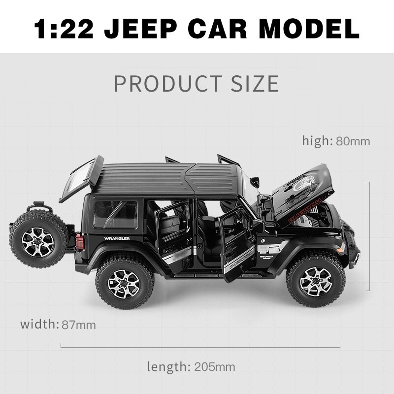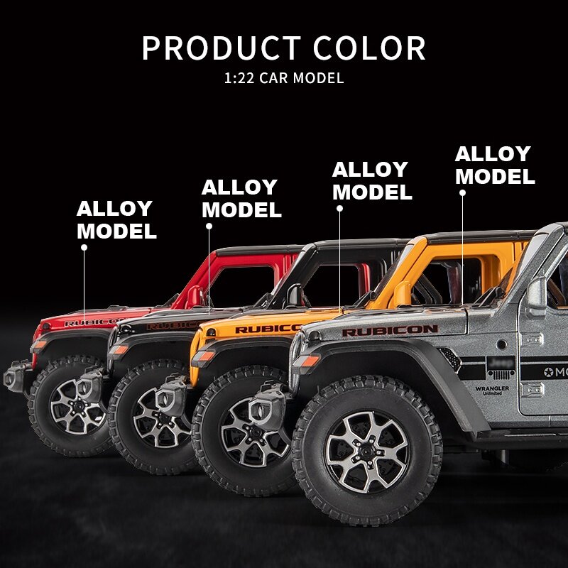 LEO 1:22 JEEP Wrangler Rubicon 4X4 Toy Car Model Metal Alloy Diecast Car Toys For Kids,Children's Toys for boy Miniauto Truck Vehicle Sound and Light Toy