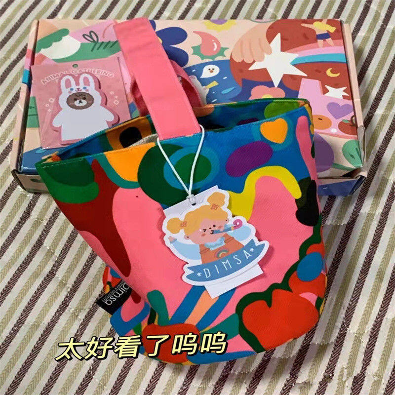 Women canvas Cotton Bucket Shaped Shoulder Bag Magnetic Buckle Tote Female Animal Cartoon Pattern Hand Carry Canvas Bags